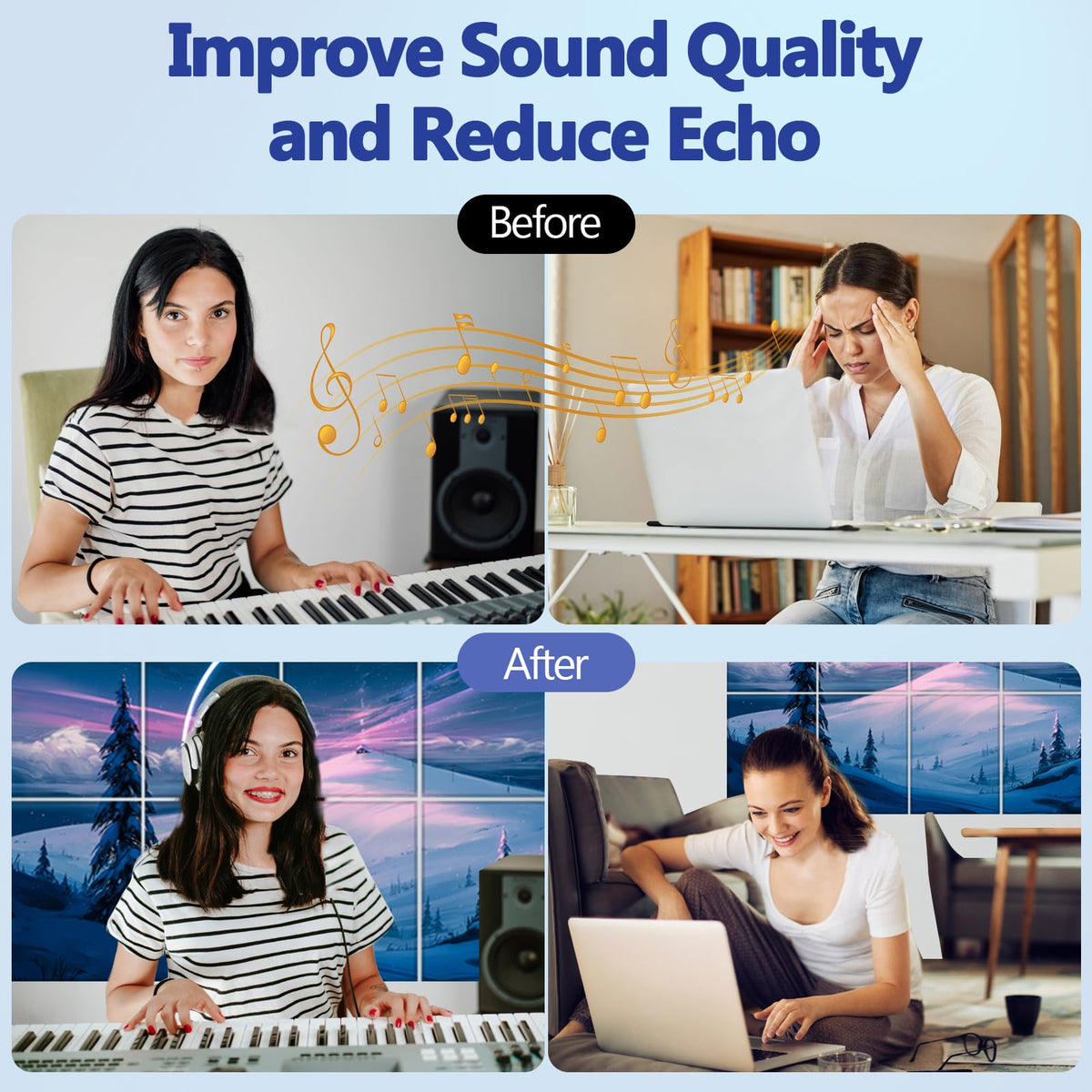 Bubos 8 Pack Art Acoustic Panels Self Adhesive Soundproof Wall Panels,48X32Inches Sound Absorbing Panels,Decorative Acoustical W