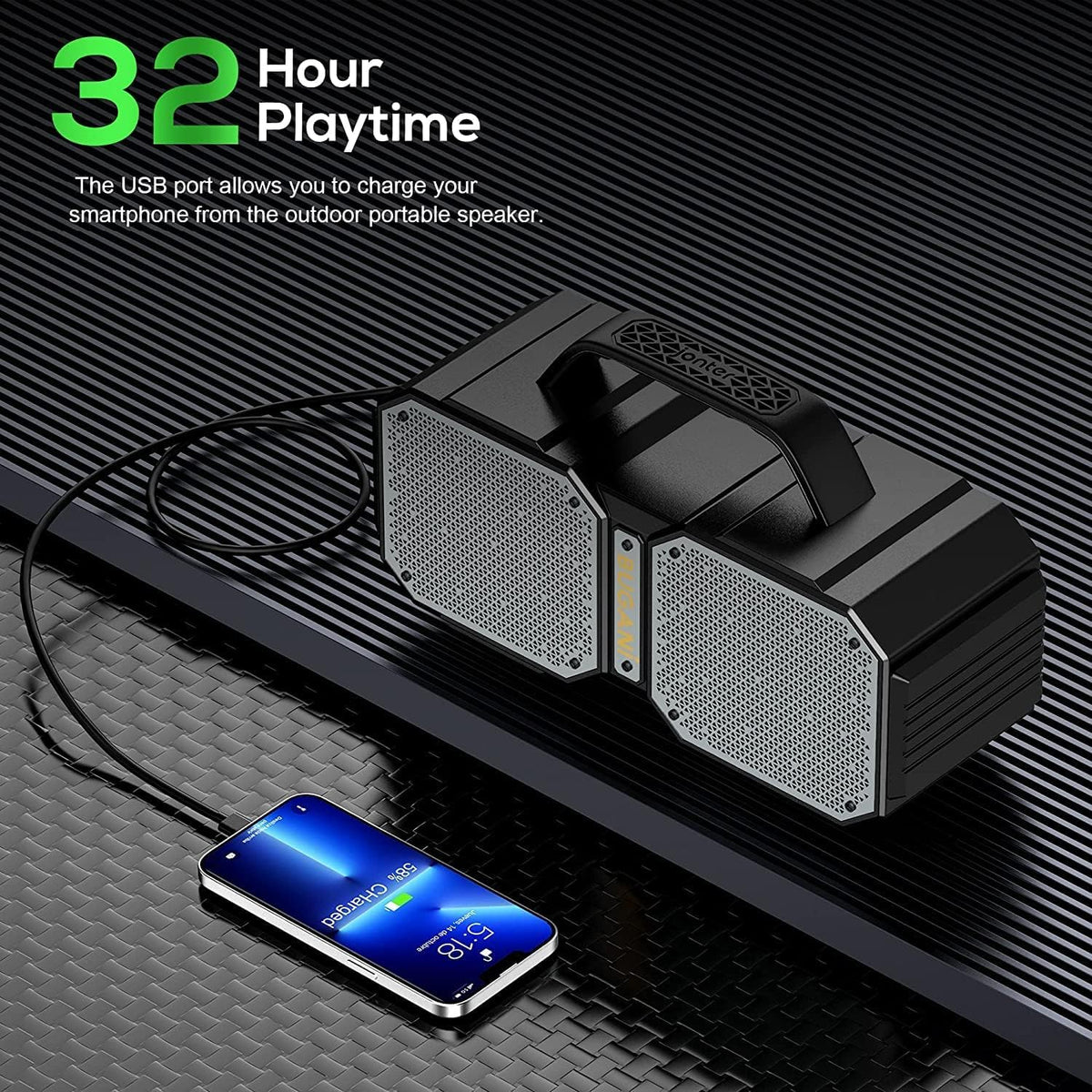Bugani Shock Portable Bluetooth Speaker, 60W Stereo Sound, Bluetooth 5.3, Custom Eq, Ipx6 Waterproof Wireless Speakers, Outdoor Speaker For Camping, Beach, Home Party, Black(New Model)