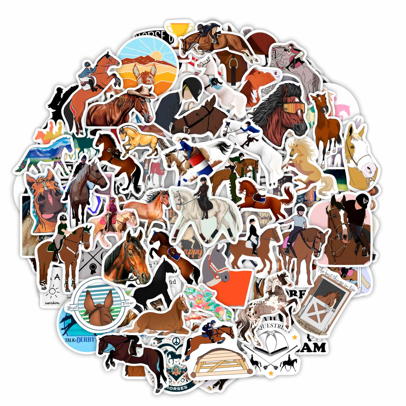 Q: Do these stickers come in different designs?A: Yes, the sticker pack includes a variety of horse-themed designs. This diversity allows for creative expression and personalization.