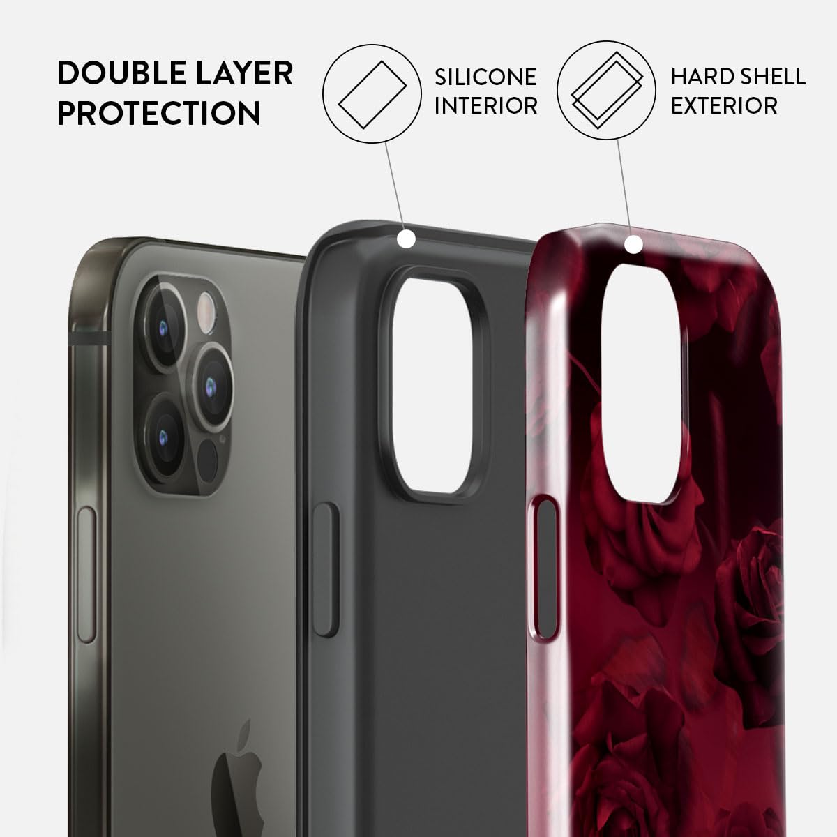 • Q: What materials are used in the BURGA Case for iPhone 13 Pro? A: The BURGA Case features a dual-layer hybrid structure made from a soft TPU silicone inner layer for shock absorption and a tough military-grade PC outer shell for added durability and protection.