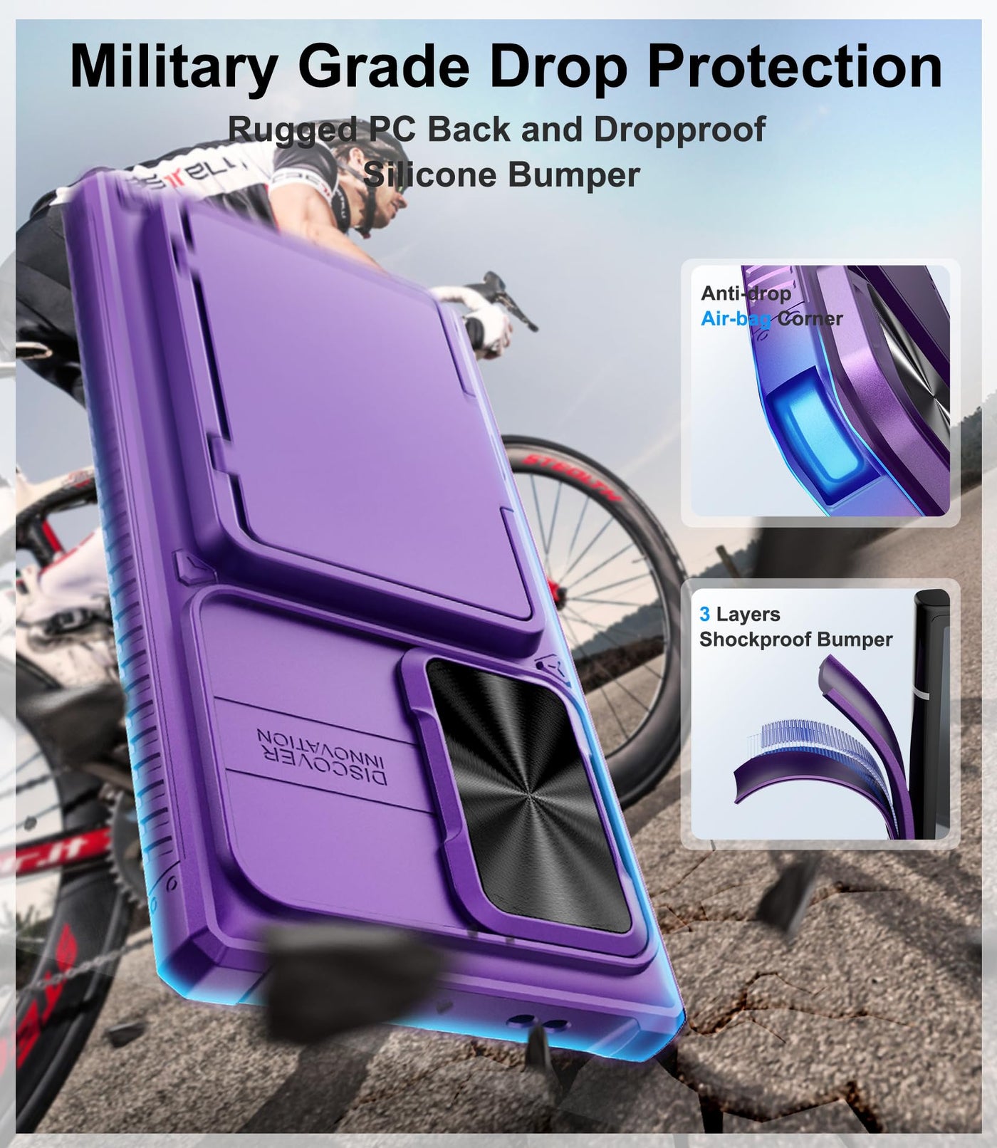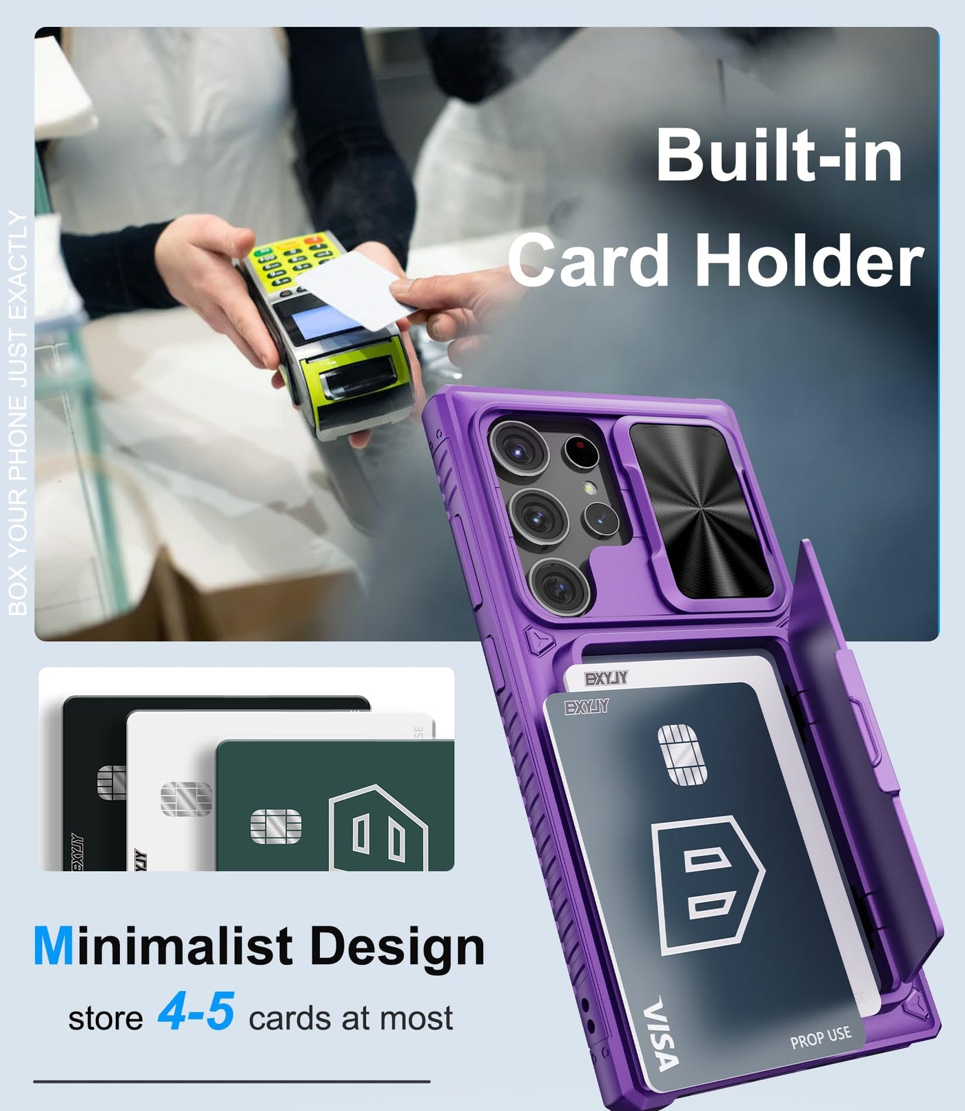 Bxyjy For Samsung Galaxy S24 Ultra Case With Card Holder (4 5 Cards) & Kickstand & Slide Lens Cover, Military Grade Protection,