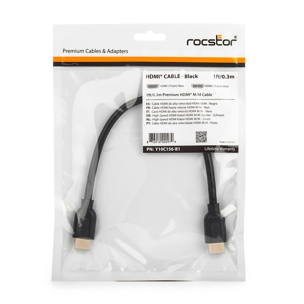 Rocstor Y10C156-B1 1Ft Hdmi Cable With Ethernet Mm Hdmi Male To Hdmi Male Black