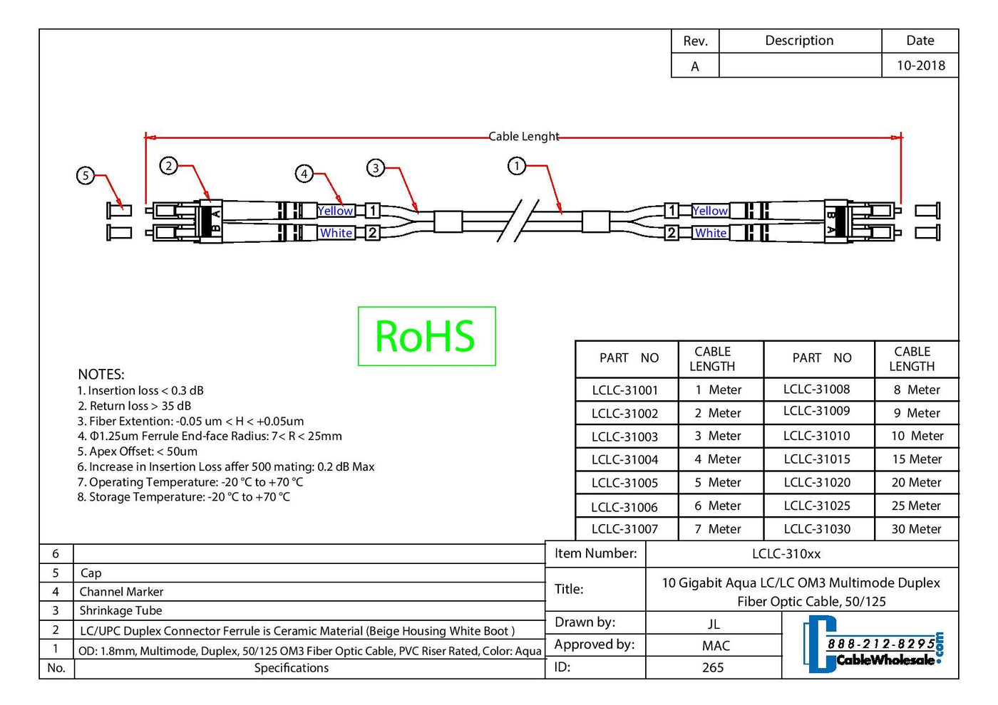 9 Meter 10 Gigabit Aqua Lc/Lc Multimode Duplex 50/125 Fiber Optic Cable. This Aqua Blue Jacketed 9 Meter (~29 Feet) 10 Gigabit Rated Fiber Optic Cable Is Terminated With Lc (Lucent Connector) Connectors On Both Ends. It Is A Multimode Fiber (50 Micron Core) Designed To Transmit Data Across Shorter Distances At Lan Speeds. The Cord Is Duplex (Two Fibers) Which Means It Permits Synchronous Communication Between Devices. The Cladding Diameter Is 125 Microns. (Not For Home Theater).