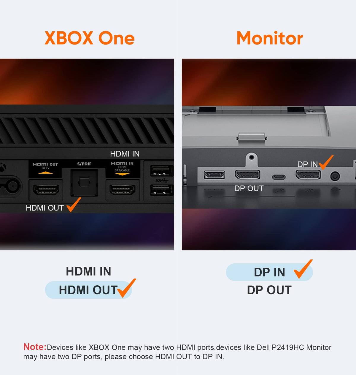 Description Cablecreation Hdmi To Dp Adaptor With Usb Power Allows You Connector You Host Hdmi Devices Such As Laptop, Pc, Dvd Player, Blu-Ray Player, Ps4, Xbox One, Video Game Console To Your Existing Displayport Monitors. Supports Resolutions Up To 4K (3840 X 2160)@60Hz, 2K@144Hz/120Hz/60Hz, 1080P@144Hz, 720P@144Hz. It Is Perfect For Home Theaters, Digital Signage, Trade Shows Or Classrooms And More. Specification - Input(From Video Source): Hdmi Male - Output(To Monitor): Displayport Female (Note: A Separate Displayport Cable Is Required, Not Included In The Package) - Audio Support: Yes - Installation: Plug And Play, No Driver Or Software Installation Required - Resolution: 4K (3840*2160) @ 60Hz - Power: Type-A Usb Male (Connect Withexternal Power Supply) - Length: Dp Female To Hdmi Male: 0.15M; Usb A Male To Hdmi Male: 0.9M Important Notes 1. When The Current Of Hdmi Source Provided Under 300Ma, Please Plug The Usb A Connector Into A Usb Power Supply Or A Wall Charger For Best Performance And Compatibility. 2. This Hdmi To Displayport Cable Adapter Is Not Bi-Directional. It Only Converts An Hdmi Output Signal (Source Device) To Displayport (Monitor/Display). 3. Devices Like Xbox One May Have Hdmi In And Hdmi Out Ports, Some Monitors May Have Displayport In And Displayport Out Ports. Please Use Hdmi Out To Connect Displayport In, Otherwise It Will Not Display Images.