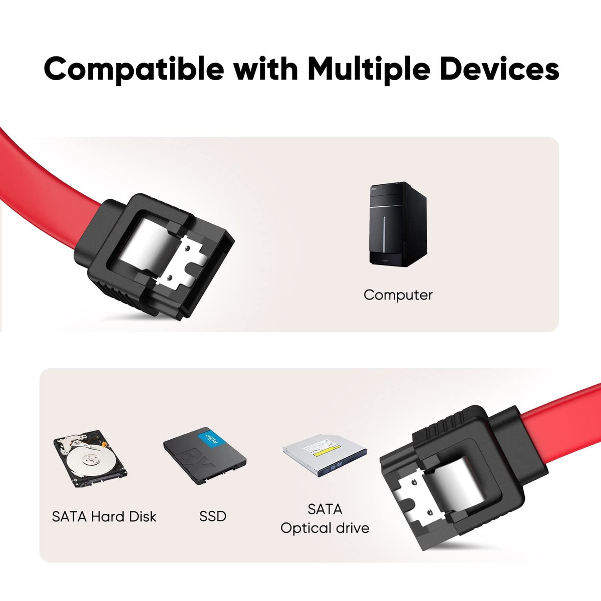 Sata Iii Cable, Cablecreation [5-Pack] 18-Inch Sata Iii 6.0 Gbps 7Pin Female To Female Data Cable With Locking Latch, Red. Sata Revision 3.0 (Aka Sata Iii) Provides Up To 6 Gbps Data Throughput, Backwards Compatible With Sata Revision 1 And 2 (Aka Sata I And Sata Ii) High-Quality Spring Steel Locking Connectors Ensure A Rock Solid Connection Between Drive And Motherboard Includes Locking Latch On Each End Of The Cable To Ensure It Doesn'T Work Itself Loose Package Includes 5 X 18 '' Sata 3 Cable. Backed With 24-Month Warranty And Lifetime Technical Service