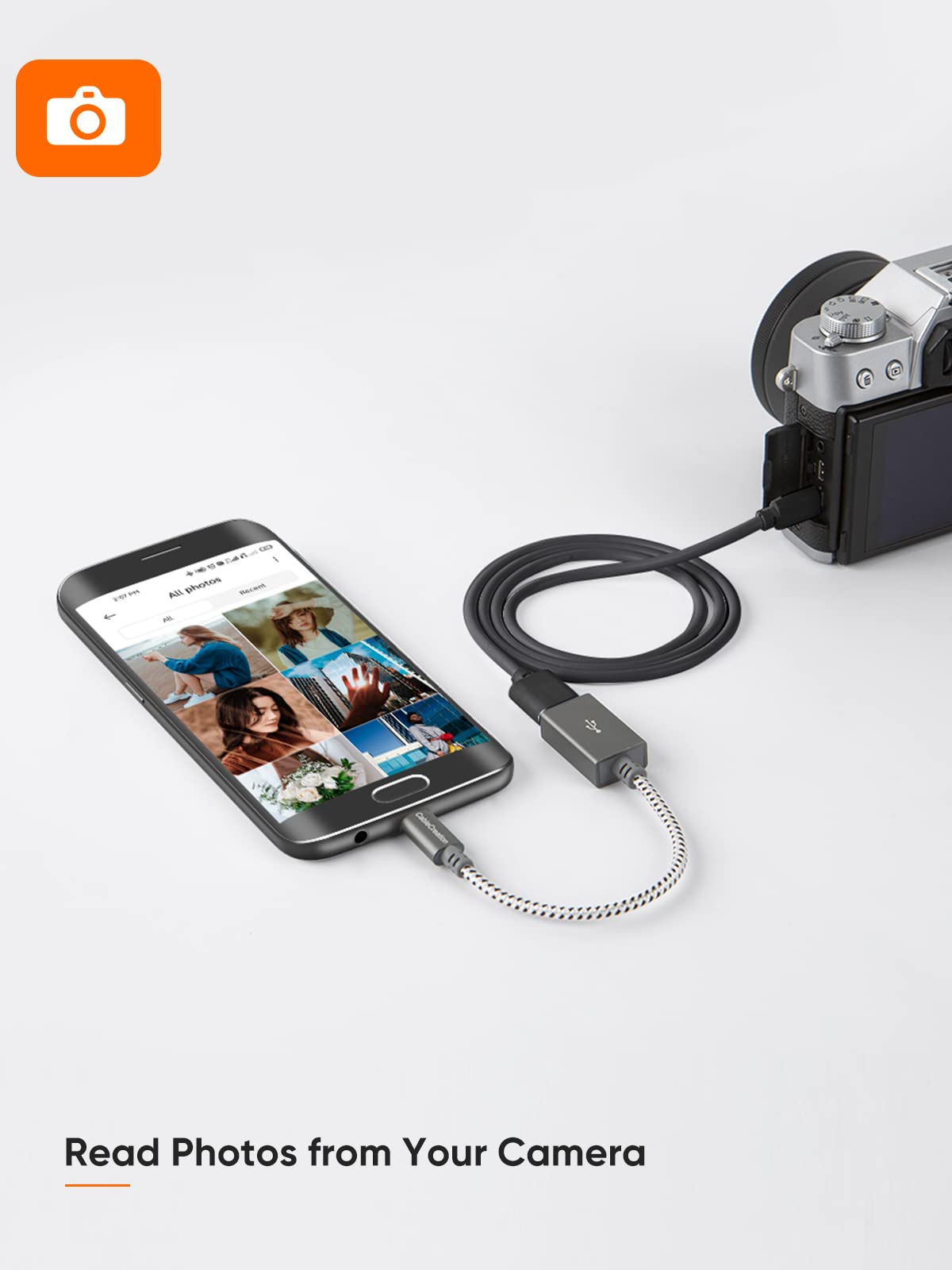 Usb To Micro Usb Adapter 0.15M, Cablecreation Usb 2.0 Micro Usb Male To Usb A Female For Usb Micro-B Devices S7, Flash Drive, Mouse, Keyboard, Game Controller, Aluminum Space Gray