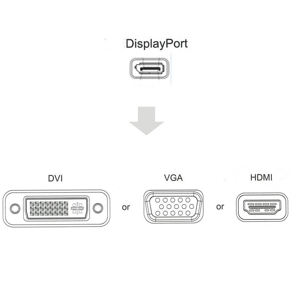 Cabledeconn Multi Function Displayport Dp To Hdmi/Dvi/Vga Male To Female 3 In 1 Adapter Converter Cable