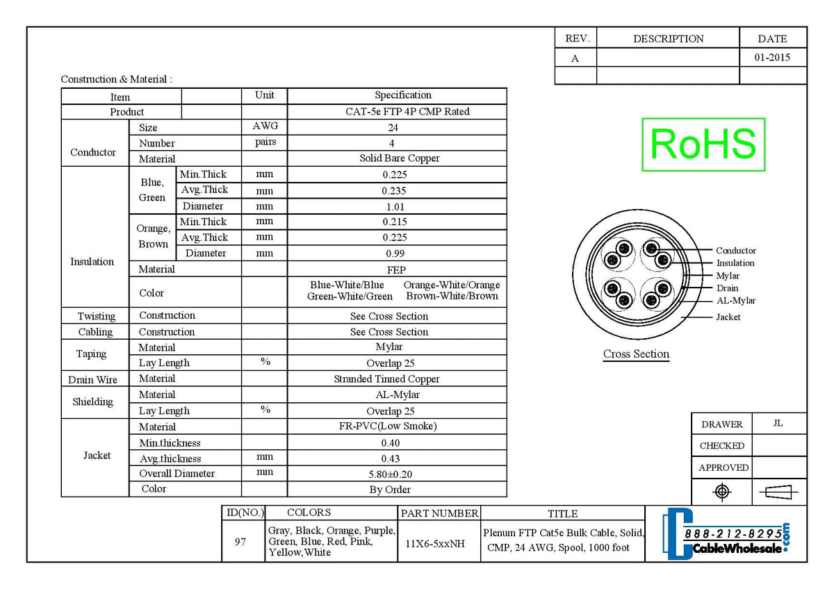 Cablewholesale 1000 Feet Bulk Cat5E Plenum Rated (Cmp) Ethernet Cable, 4 Pair Solid Bare Copper, Stp (Shielded Twisted Pair), Sp
