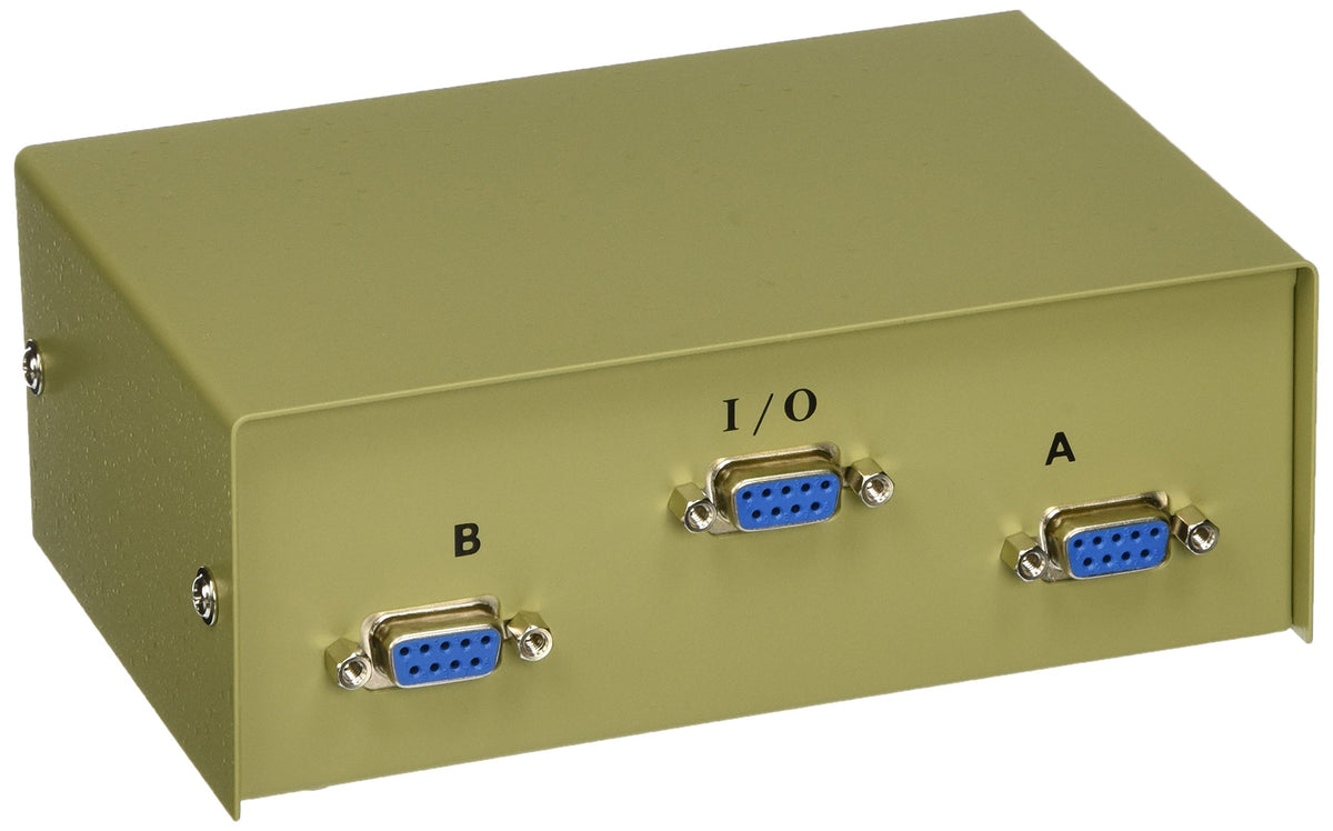 AB 2 Way Switch Box, DB9 Female Converts back and forth between DB9 Female Plug and 2 DB9 Serial Female Ports