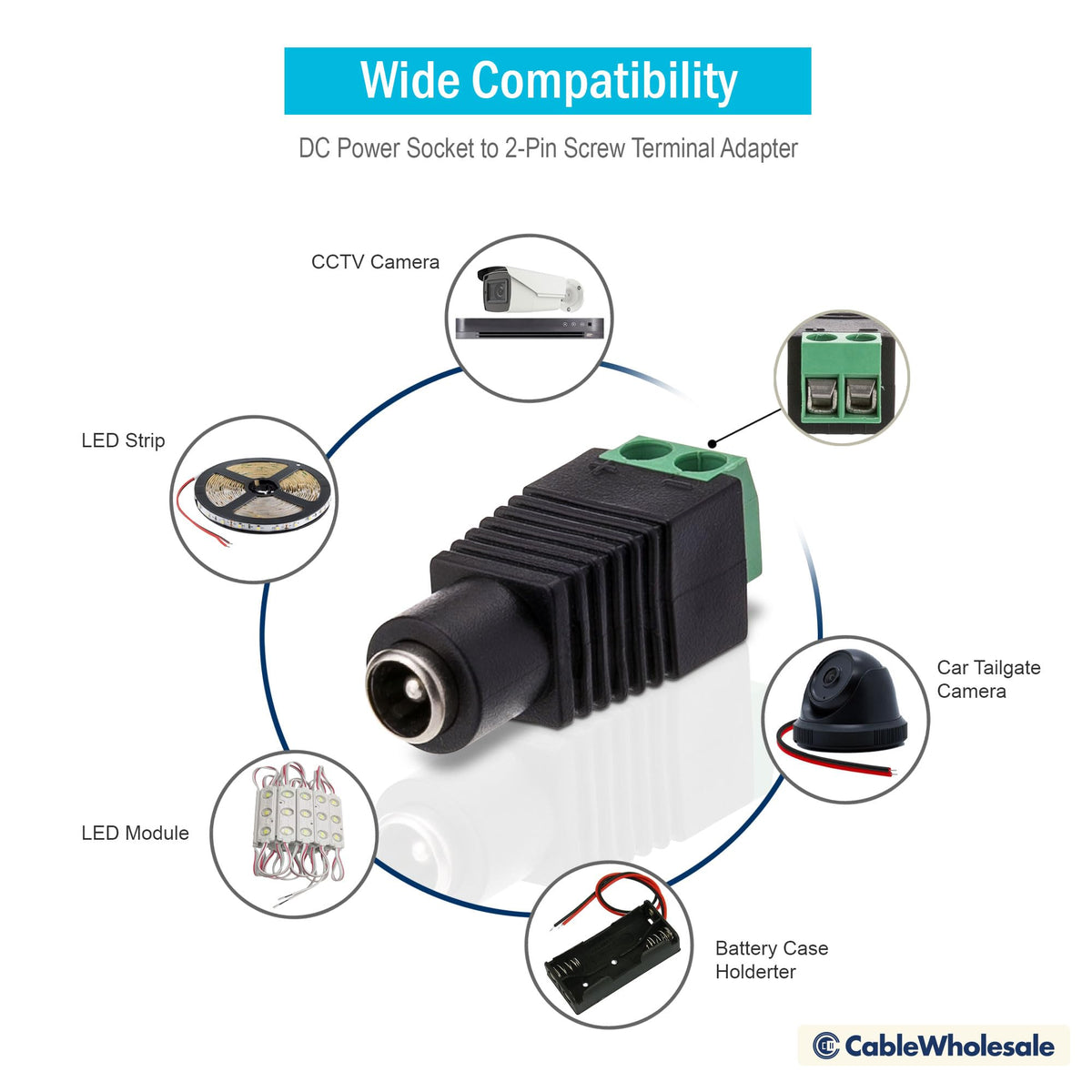 Dc Male Power Plug To 2 Pin Terminal (Screw Down) Adapter.