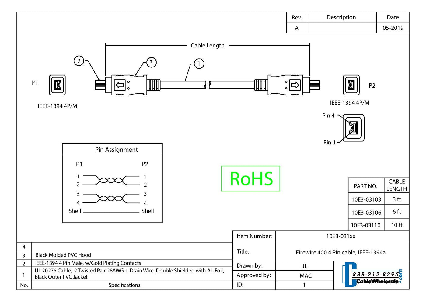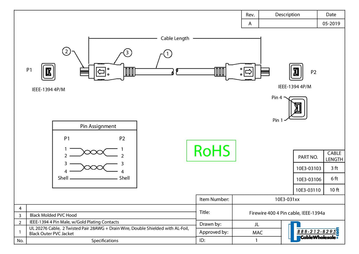This 6 Foot Black Fire Wire 400 (Ieee-1394A) Cable Features A 4 Pin Connectors On Both Ends. Our Cable Features Thick Cable Jacketing With A Heavy-Duty Braided Shield For Protection From Abuse And Emi/Rfi. Fire Wire Cables Are Used To Transfer Data Between Fire Wire Enabled Devices Such As External Hard Drives, Camcorders, Dv Recorders, Digital Cameras, Etc To Computers, Laptops And Other Fire Wire Capable Devices. When Selecting Your Fire Wire Cable Pay Attention To Pinning Of The Devices You Are Connecting To Ensure You Choose The Correct Cable For Your Application.