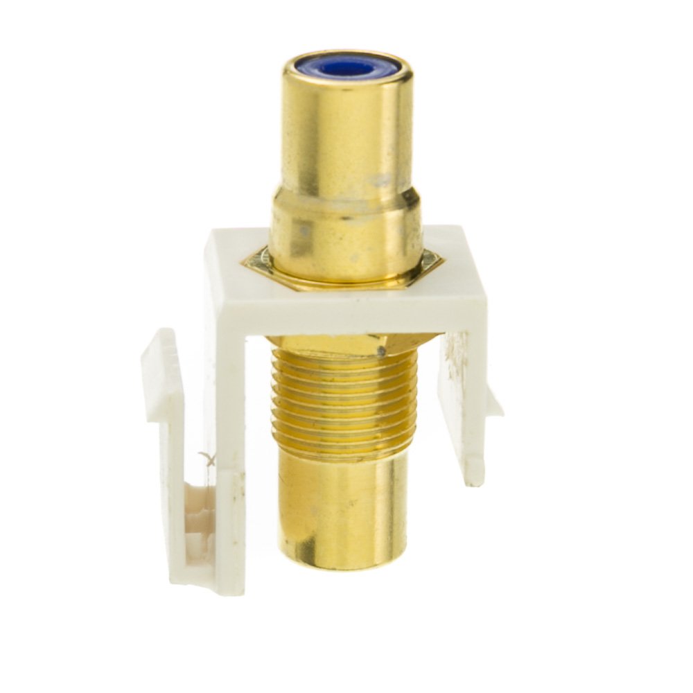 This White Keystone Jack With Blue Rca Coupler Is For Use With Audio Video, And Home Theater Applications. It Is Designed For Use With All Keystone Style Wall Plates And Standard Rca Cables. Attach Any Rca-Connector Equipment Or Cables With Ease And Simplicity. Blue Is Usually Used For Component Rgb Video.