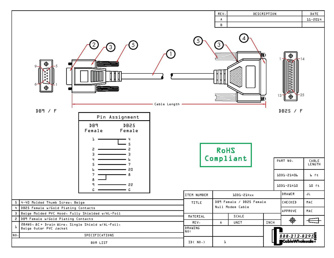 This 6Ft Db9 Female To Db25 Female Null Modem Cable Is Usually Used To Transfer Data From One Pc Directly To Another Pc And Features Molded Connectors And Gold-Plated Contacts For Optimal Signal Transfer.