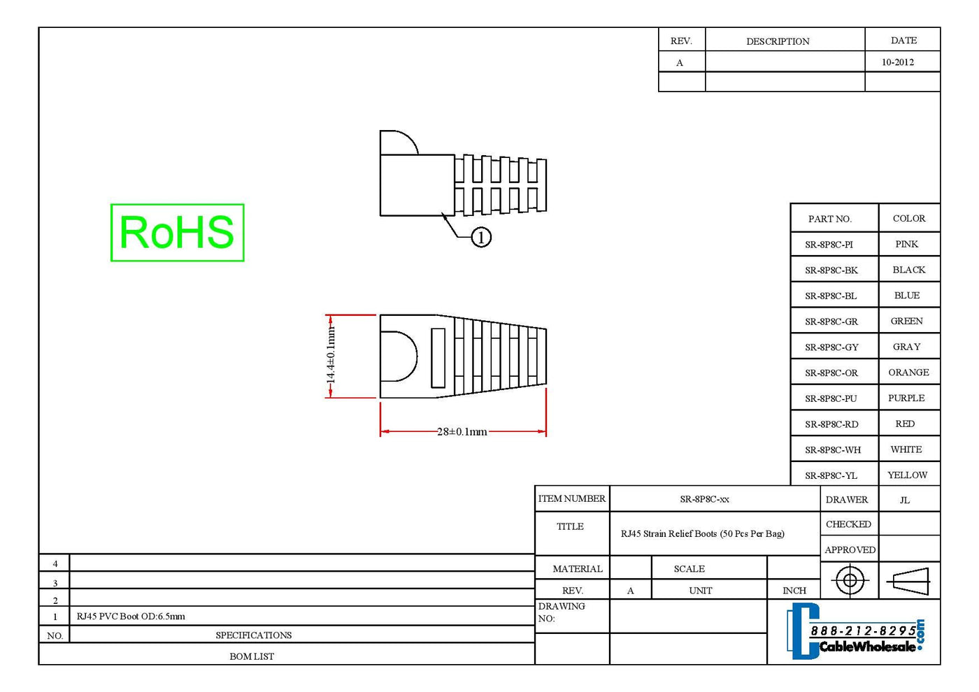 Cablewholesale Rj45 Ethernet Network Cable Strain Relief Boots, Rj45 Boot Cover Fits Cat5, Cat5E, Cat6 Ethernet Lan Cable Connec