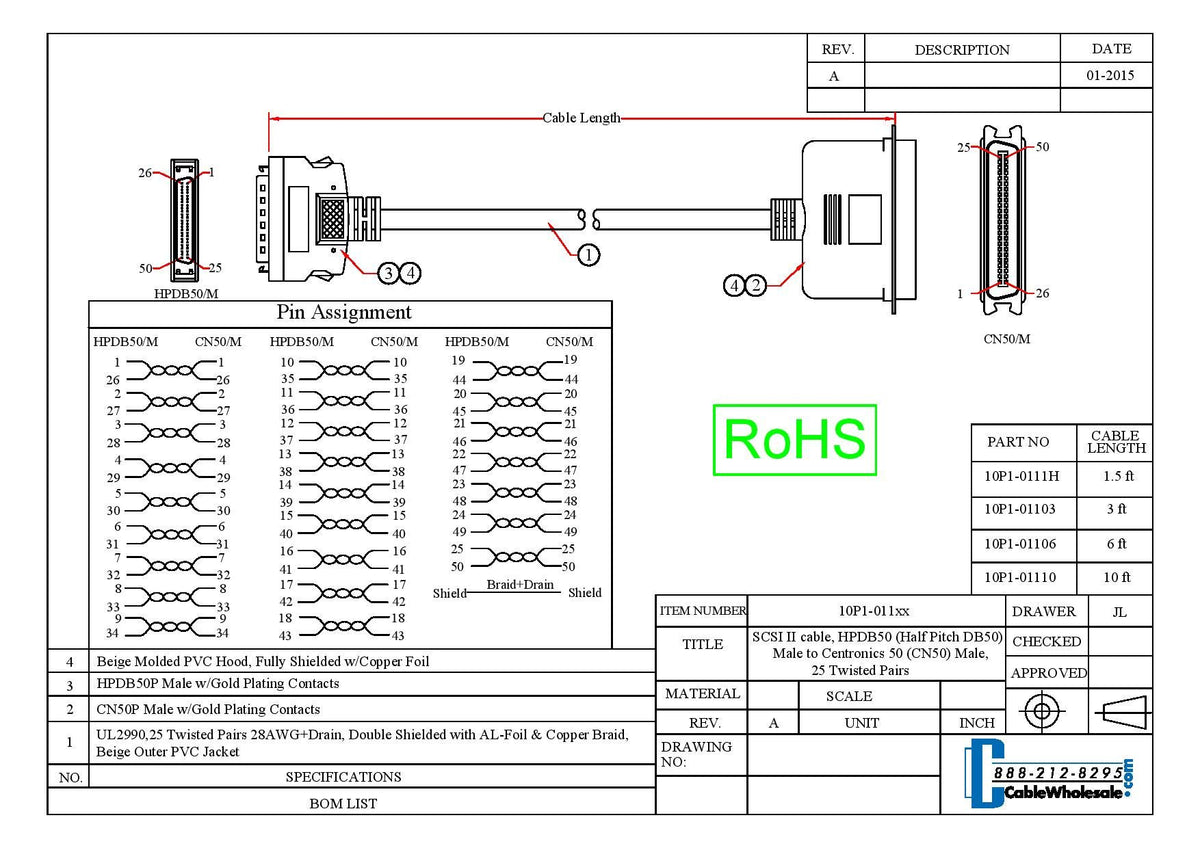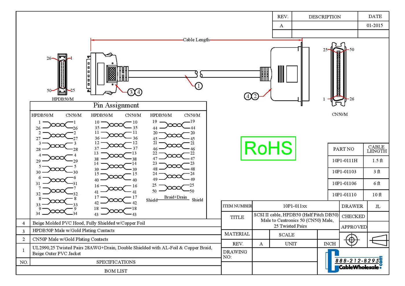 This 6 Foot Scsi Ii Cable Features 25 Conductor Pairs And Gold-Plated Connectors For Superior Data Transfer. The Connectors Are Hpdb50 Male On One End And Cn50 (Centronics 50) On The Other End.
