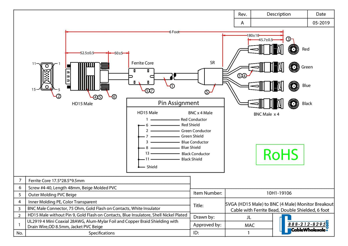 This 6 Foot Hd15 (Svga) Male To Bncx4 Male Cable Is Used For Connecting A Pc To A Monitor That Utilizes Bnc Connectors. Our Cable Features A Boot, A Ferrite Bead, And Double-Shielding To Insure Minimal Signal Loss And Reduce Interference.