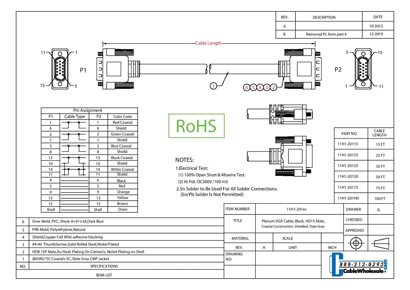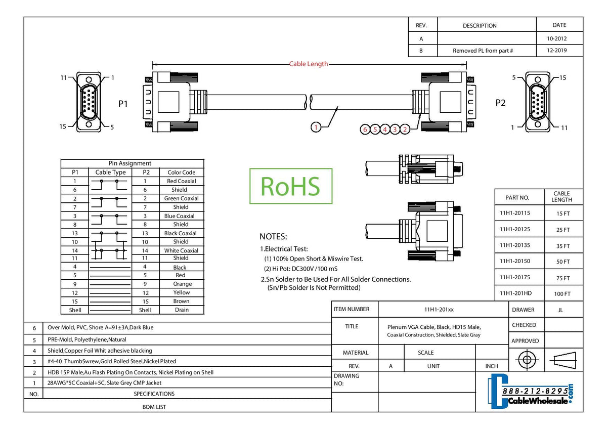 Cablewholesale Vga To Vga Cable Svga Plenum Rated Cable, Hd15 Male Coaxial Computer Monitor Cable With Ferrites, Male To Male Sh