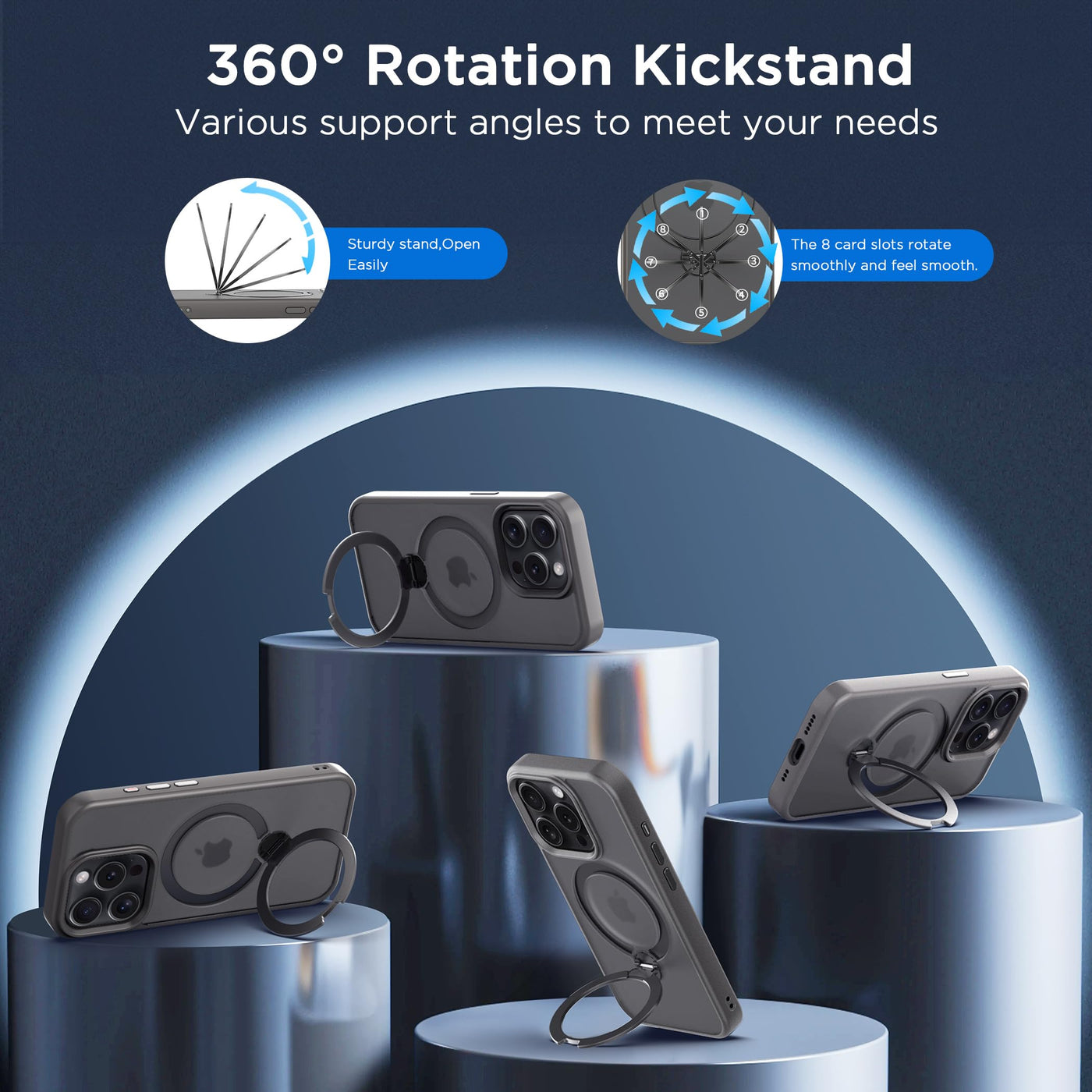 Cacoe Magnetic Case For Iphone 13 Pro 6.1 Inch With 360 Rotatable Ring Stand, Compatible With Magsafe Car Phone Mount, Cover Pho