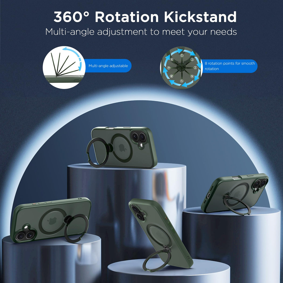 Cacoe Magnetic Case For Iphone 16 Plus 6.7 Inch With 360 Rotatable Ring Stand, Compatible With Magsafe Car Phone Mount, Cases Co