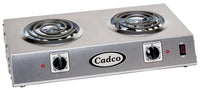 Cadco Cdr 1T 21 1/4' Electric Portable Countertop Space Saver Double Hot Plate W/Two Tubular Burners For Restaurant Hotel Food Truck Concession Kiosk, Stainless Steel, 120V