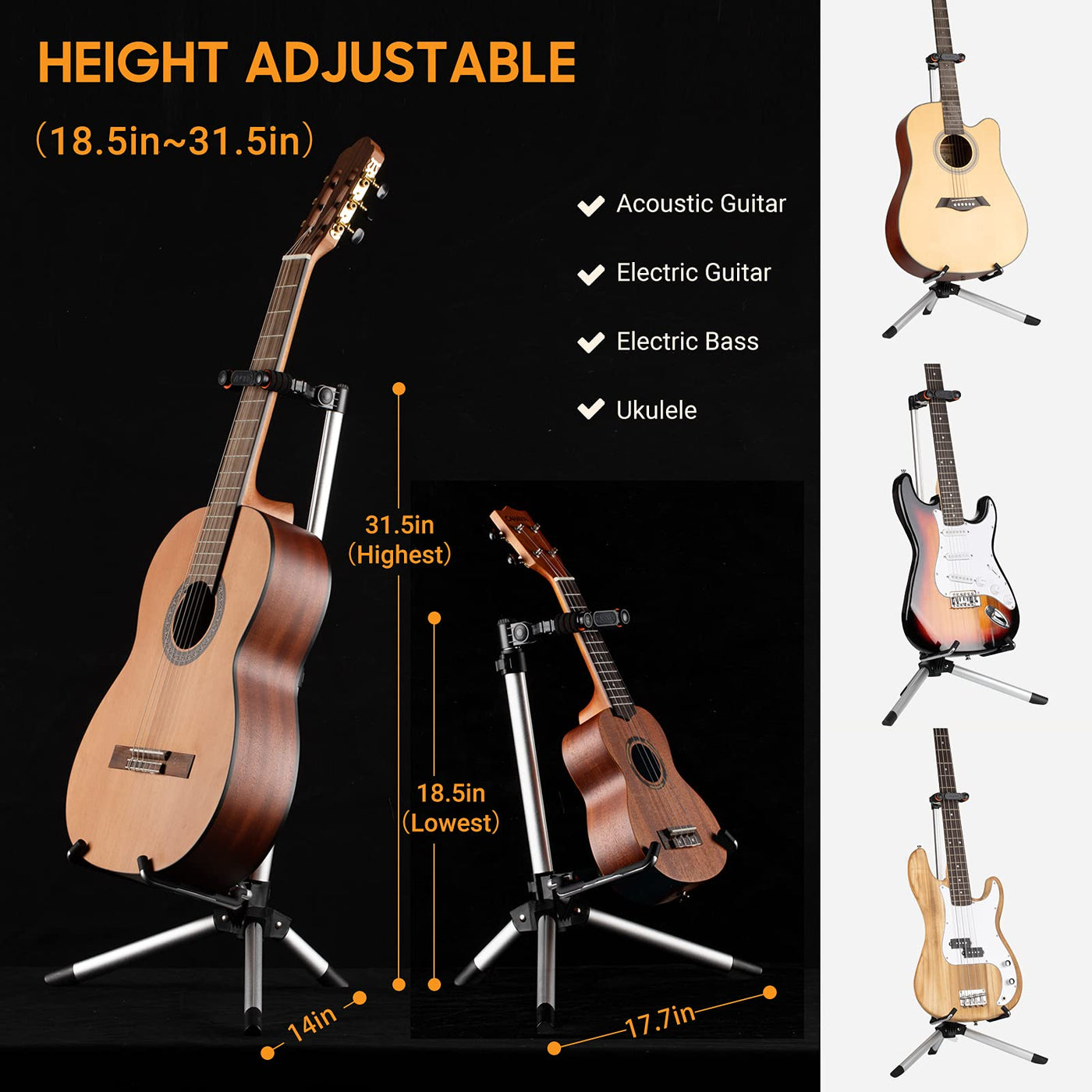 Cahaya Guitar Stand Floor For Acoustic Electric Guitars And Bass Adjustable Height Folding Guitar Stand Lightweight Travel Instrument Holder