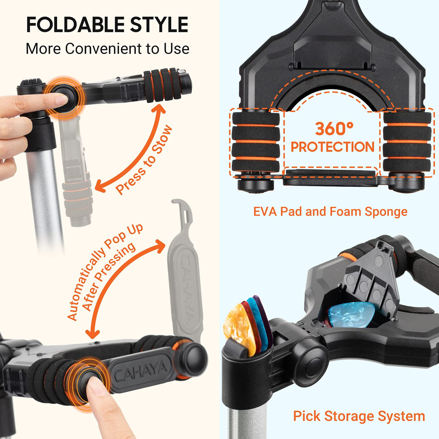 Cahaya Guitar Stand Floor For Acoustic Electric Guitars And Bass Adjustable Height Folding Guitar Stand Lightweight Travel Instr