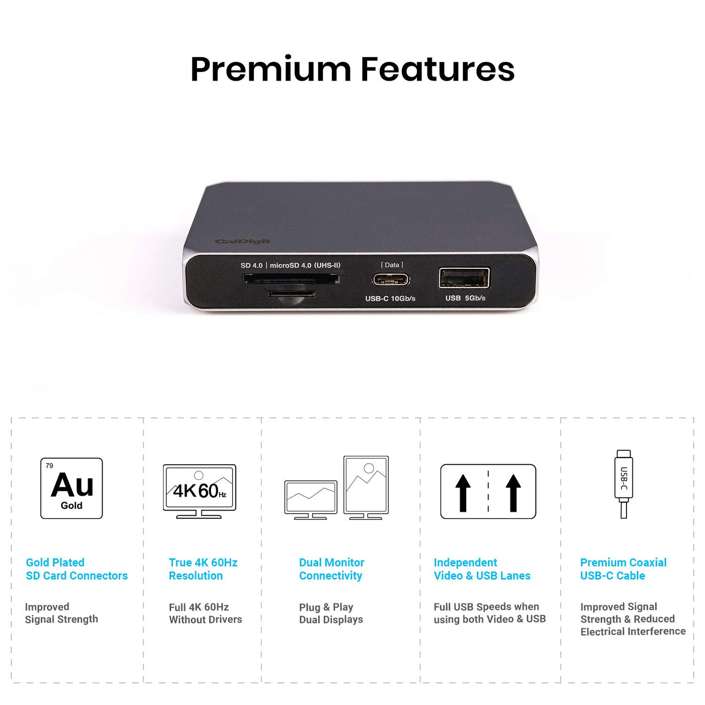 Caldigit Usb-C Gen2 10Gbs Soho Dock - Up To 4K 60Hz, Hdmi 20B, Hdr, Displayport 14, 10Gbs Usb A & Usb C, Uhs-Ii Microsd And Sd Card Readers, Bus Power And Passthrough Charging Support