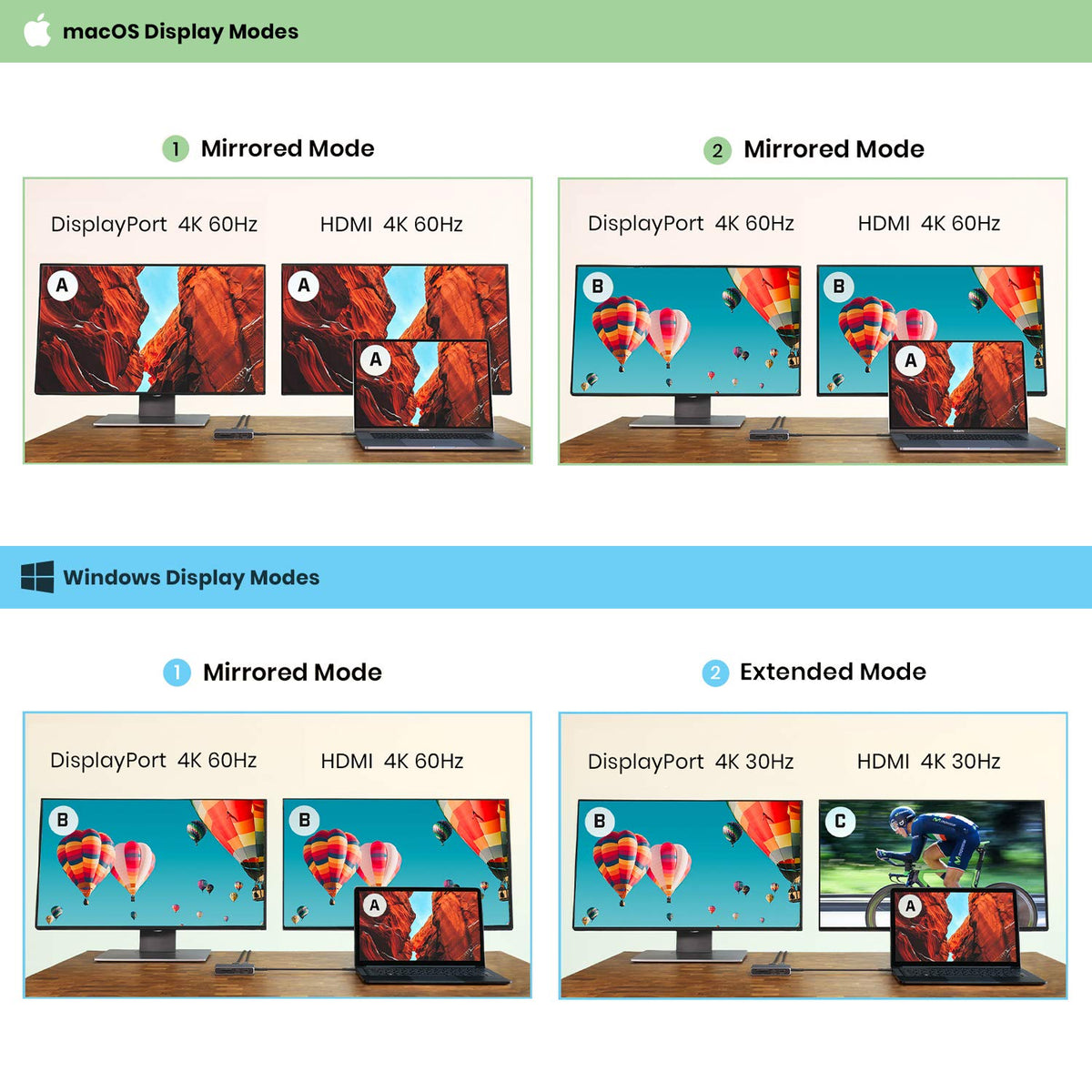 Q: Can I use the SOHO Dock for dual displays?A: Yes, the CalDigit USB-C 10Gb/s SOHO Dock supports dual displays. It can output a single display at up to 4K 60Hz, or dual displays at 4K 60Hz mirrored (on Mac & Windows) or dual 4K 30Hz extended (on Windows only). Ensure that your system meets the necessary display port specifications for optimal performance.