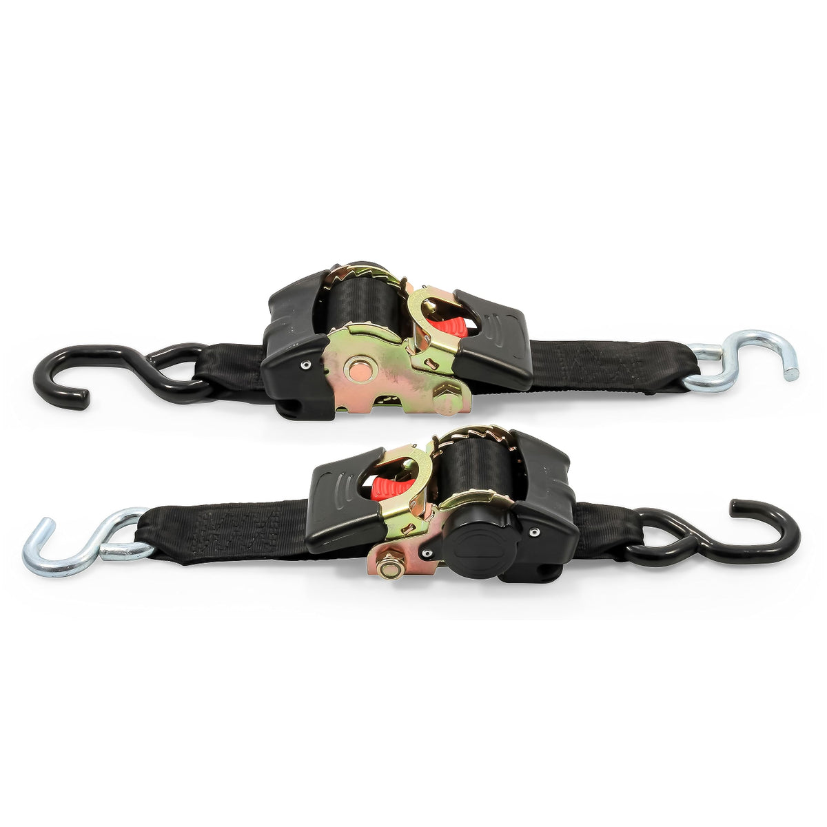Camco's Retractable Transom Tie Down Straps are essential for hauling and transporting. They support and safely secure boats, motorcycles, ATVs, furniture, cargo, equipment, machinery and more. These retractable straps have a convenient ratcheting mechanism and feature easy-to-use hooks on each end. A bolt-on design allows you to mount the straps directly to your trailer. They are made of durable polyester webbing and measure 6-feet (L) x 2-inches (W). The straps have a break strength of 3,330 lb. and a safe working load of 1,100 lb. Quantity: 2-pack.