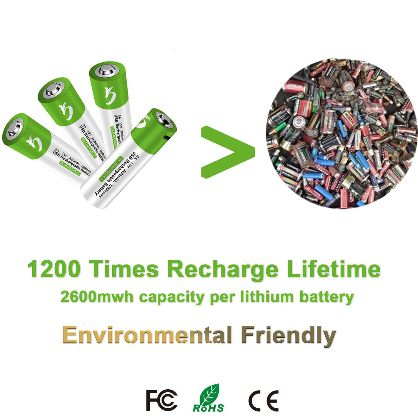 Q: Are the CAMELCELL AA batteries environmentally friendly?A: Yes, the CAMELCELL AA batteries are designed to be environmentally friendly. They utilize the latest lithium rechargeable technology to minimize waste.