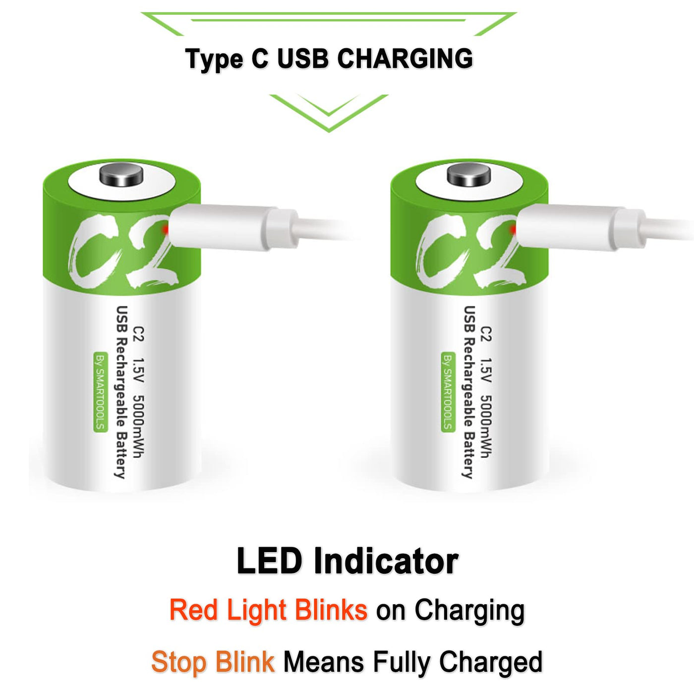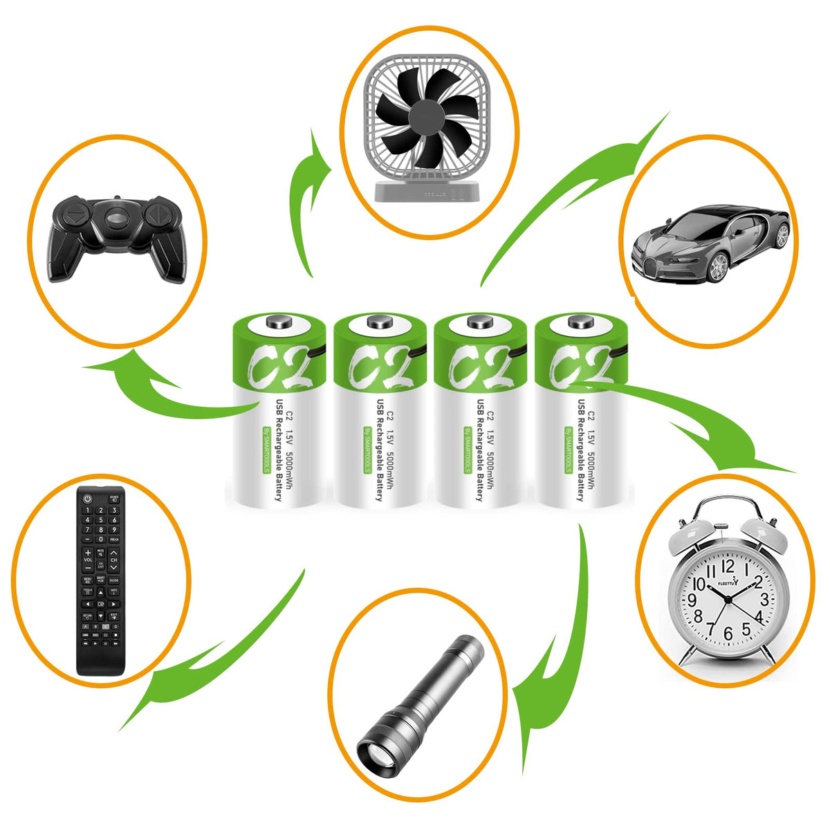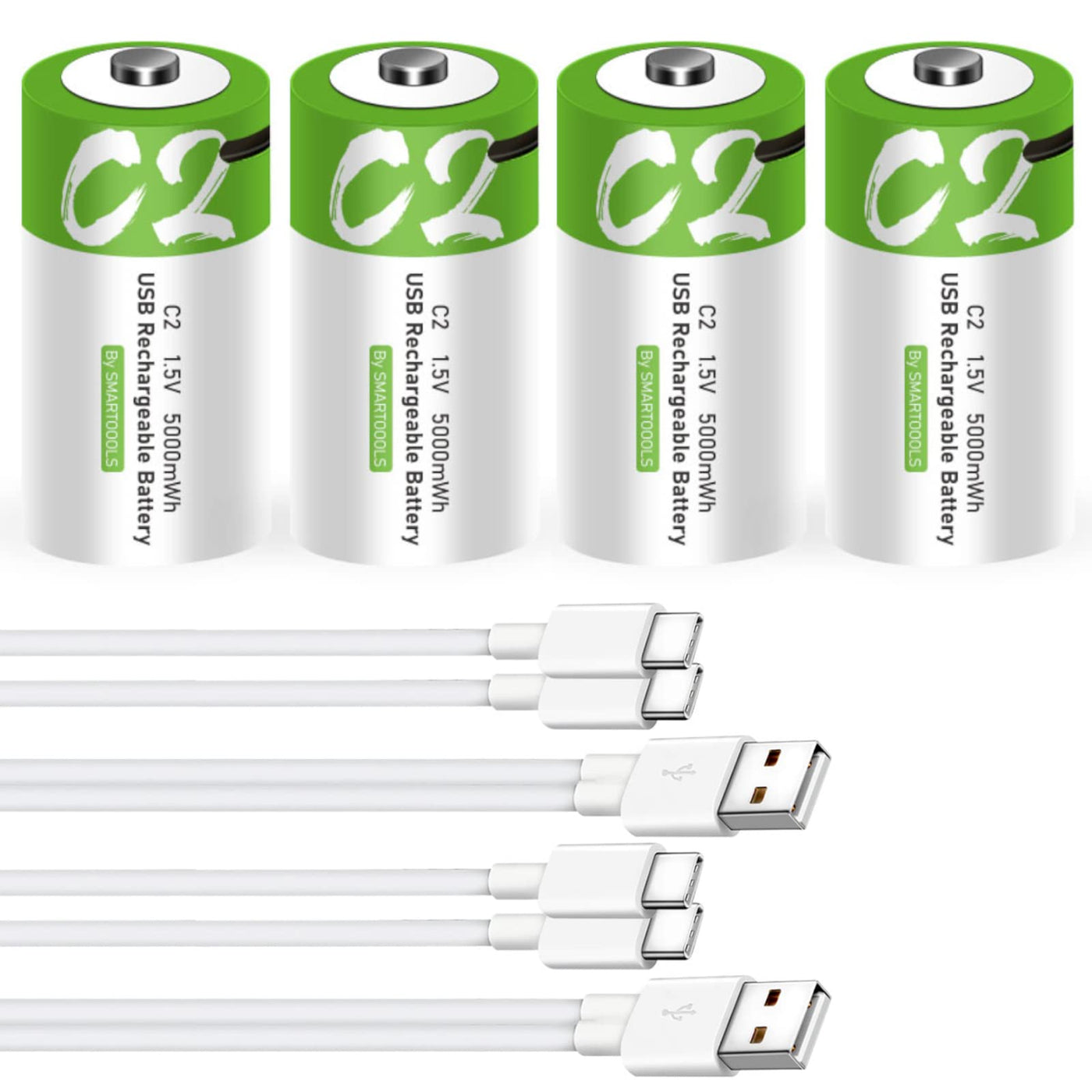4 Pcs C Batteries,Rechargeable C Batteries ,High Capacity: 5000Mwh Battery Life: 1200 Cycles Recharge Port: Type C Charging Time: 2.5 H Fast Charge