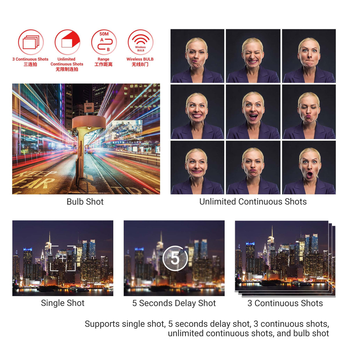 Package Includes: Pr-Un1 Transmitter X 1 Pr-Un1 Receiver X 1 Aaa Battery X 4 Connecting Cable X 1 Removable Clip X 1 Lanyard X 1 Instruction Manual X 1 Simple Operation - How To Use: 1. Install The Aaa Battery Included To Both The Receiver And The Transmitter. (Make Sure To Remove The Plastic Protective Paper On The Battery Before Installation) 2. Set The Receiver And Transmitter To The Same Channel (Normally The Channel Is Already Matched When You Receive The Package, So Actually You Don'T Need To Set It, But If You Ever Reset The Channel, Make Sure They Are The Same) 3. Once The Batteries Are Properly Installed And The Channels Are Matched, When You Press The Shutter Button On The Transmitter, Both The Led Bulb On The Transmitter And Receiver Will Light Up. (If Not, Please Check If The Battery Is Installed Correctly Or The Battery Is Dead) 4. Once The Transmitter Matches The Receiver, Connect The Receiver To The Camera Via The Camera Connecting Cable Which Is Included In The Package, Then Set The Transmitter Into The Working Mode You Want And Finally Press The Shutter Button To Take A Photo Wirelessly. Attention Please: This Remote Does Not Work When The Camera Is In Movie Mode, So It Cannot Control Video Start And Stop!