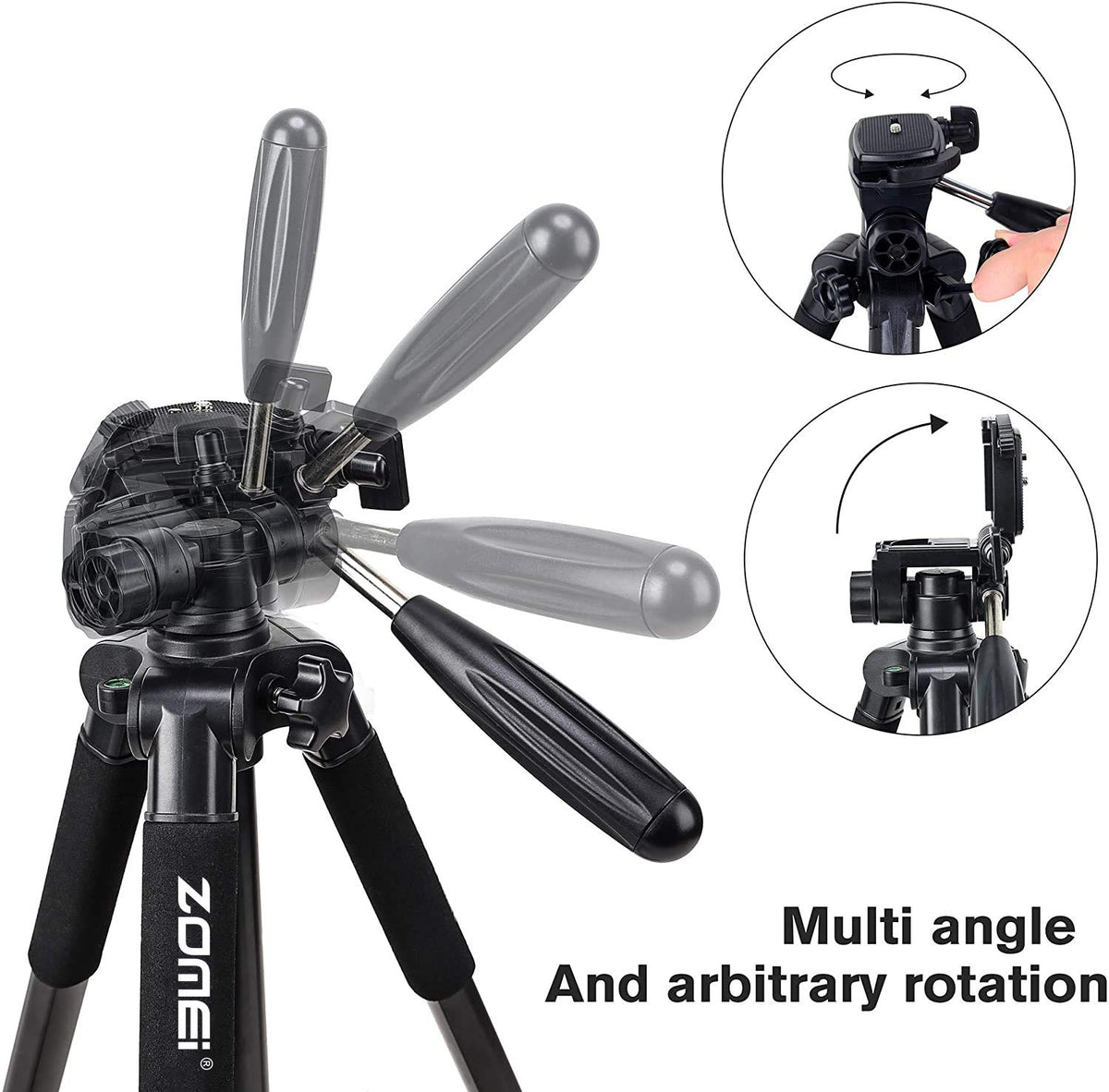 Camera Tripod 55 Inch Q111 With Phone Holder,Cell Phone Tripod Stand Protable Lightweight For Canon Nikon Sony Dslr Projector Webcam Spotting Scopes Gopro And Smartphones Live(Black)