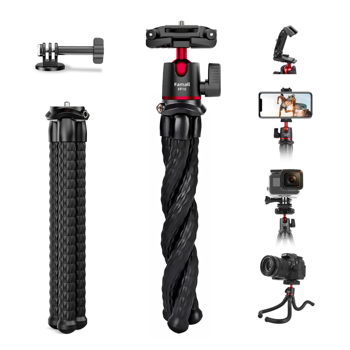 Camera Tripod, Famall Flexible Tripod Stand For Phone With Cold Shoe Phone Mount For Iphone Canon Nikon Sony Cameras