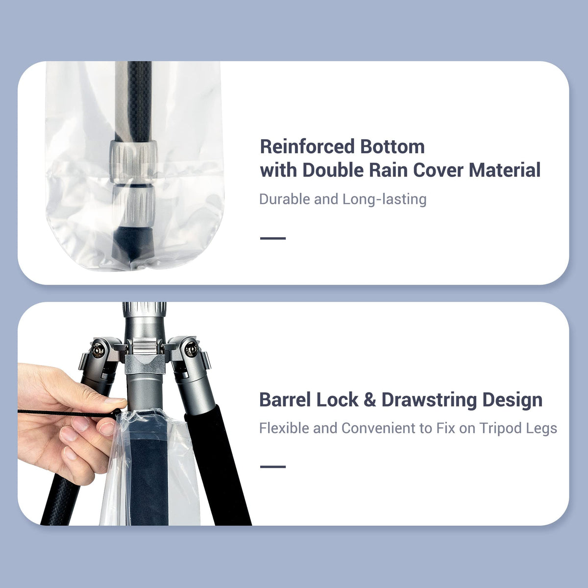 The Jjc Rt-1 Tripod Leg Rain Covers Are Designed For Photographers To Protect Their Expensive Tripod Equipment. The Rain Covers Slip Over The Tripod'S Leg To Safeguard Against Debris, Sand, Mud, Snow And Water While Shooting In The Elements Or Inclement Weather. Made Of Pe Material, The Rain Covers Are Durable And Lightweight, Small And Easy To Be Stored In A Pocket Or Camera Bags After Packing Down.