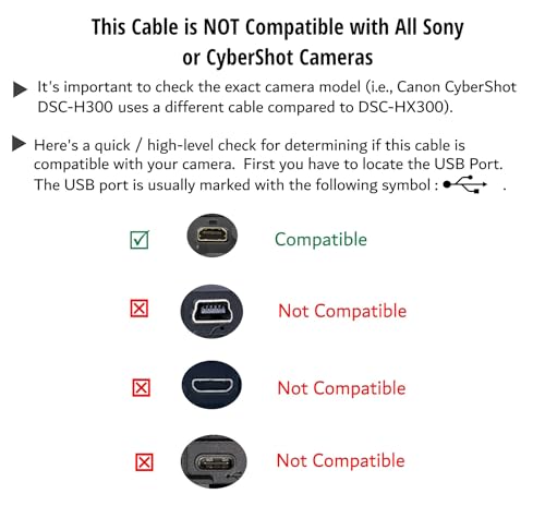 Note: This Cable Is Compatible With The Sony Cybershot Models Listed Above. This Not Compatible With All Sony Camera Models. If Your Camera Model Is Not Listed Above, Please Contact The Seller, Ienza. Compatible With: Sony Cybershot Cyber-Shot Dsch200 , Dsch300 , Dscw370, Dscw800, Dscw830, Dsc-H200 , Dsc-H300 , Dsc-W370, Dsc-W800, Dsc-W830 Use: High-Quality Usb Charge Photo Picture Pc Computer Transfer Cable Coded For Select Sony And Cybershot Cyber-Shot Camera Models. Camera To Pc Computer Usb Photo Picture Cable Cord, Charge Cable