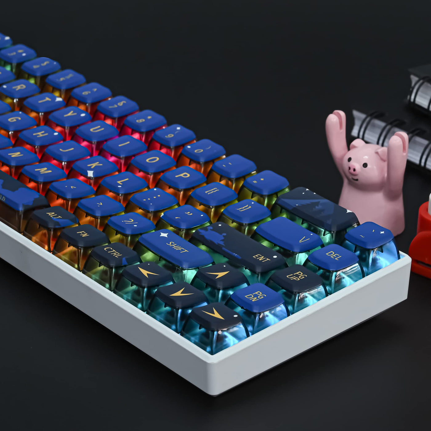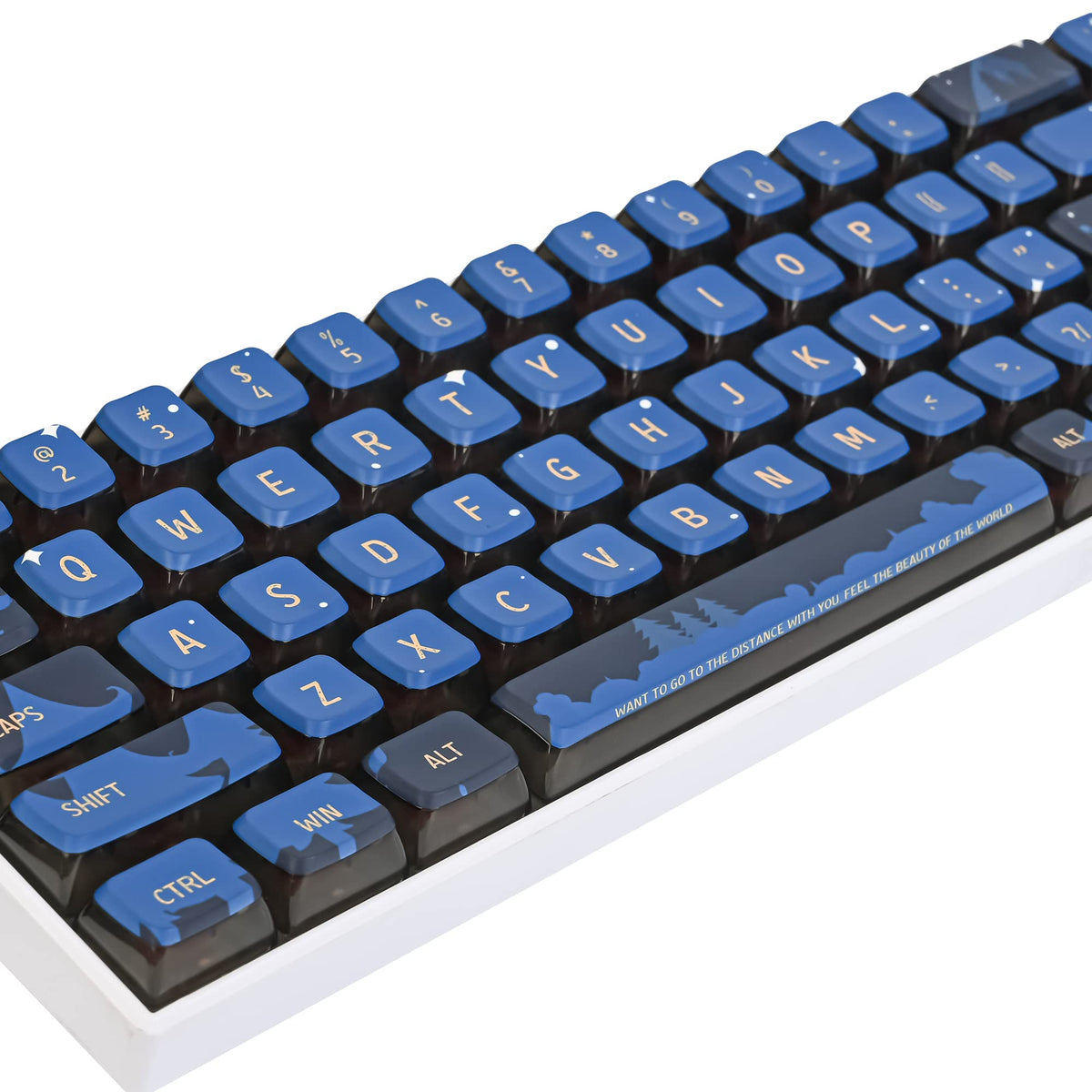 Camping Asa Pudding Custom Keycap, 118 Key Pbt Sublimation Blue Key Cap Set For Cherry/Gatron Mx Switches 60 Percent/64/61 Gamin