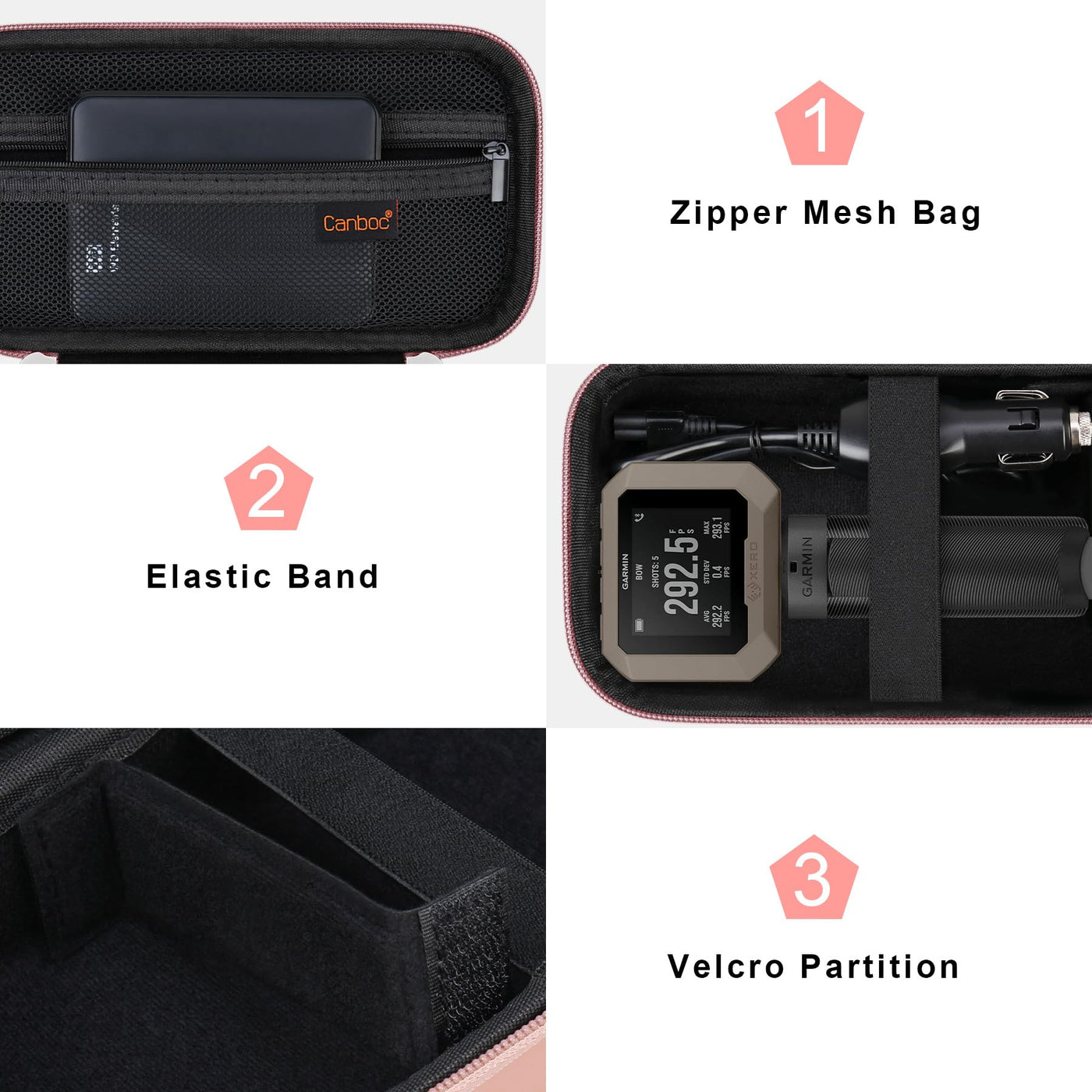 Canboc Carrying Case Compatible With Garmin Xero C1 Pro Compact Chronograph, Mesh Pocket Fit Cable, Portable Charger, Power Bank