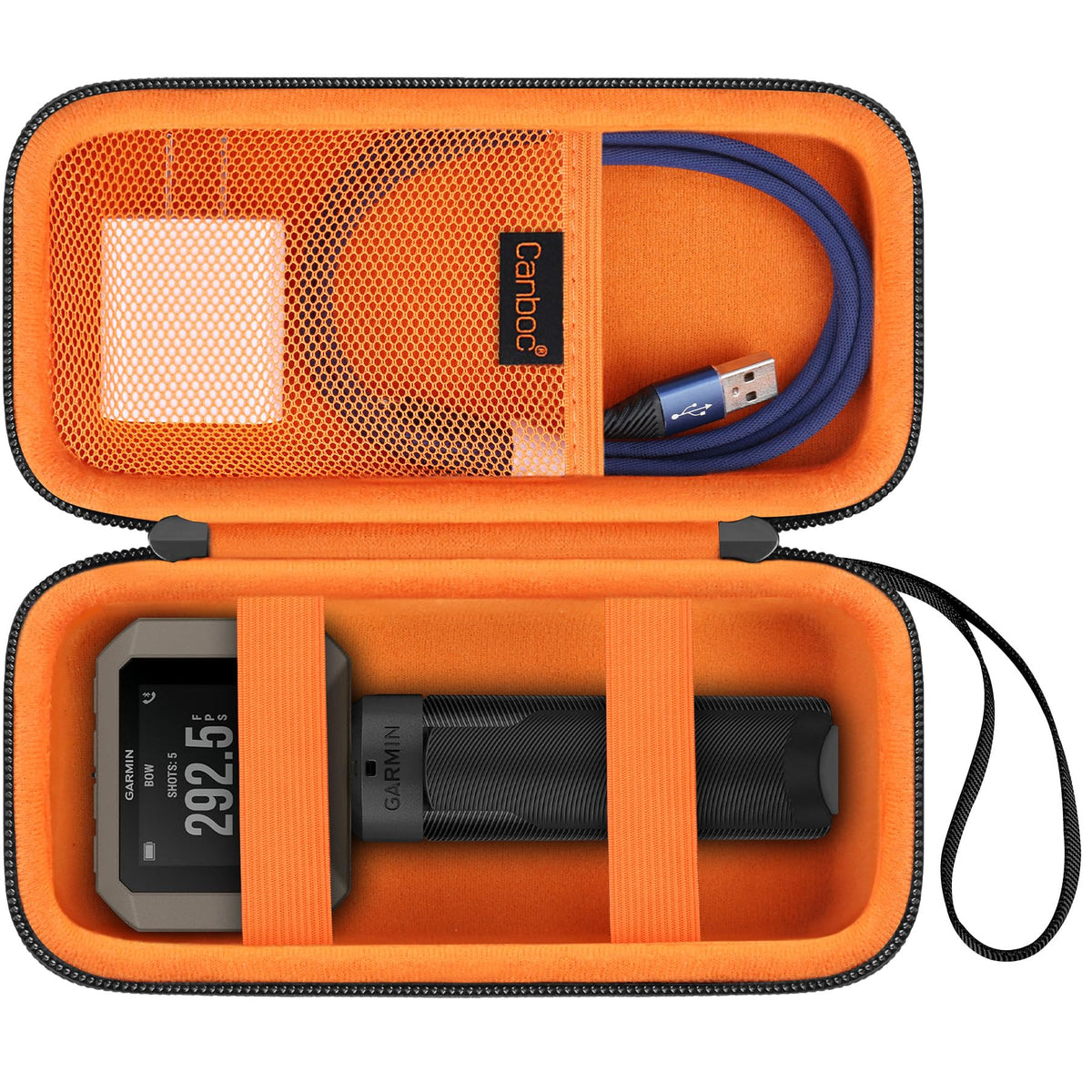 Canboc Hard Case For Garmin Xero C1 Pro Compact Chronograph, Mesh Pocket Fit Cable, Charger, Power Bank, Black+Orange (Case Only