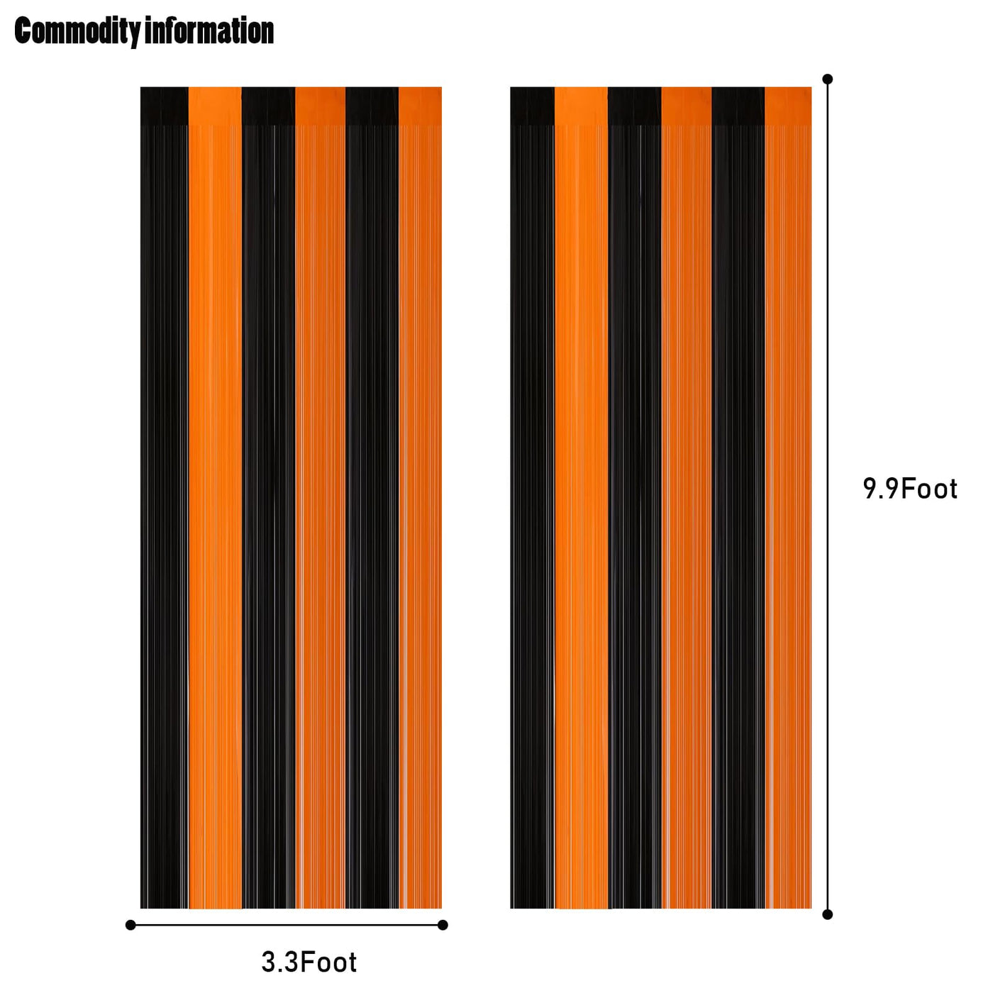 Canrevel 2 Pack 3.3X8.2 Feet Black And Orange Foil Fringe Backdrop Curtains, Tinsel Streamers Birthday Party Decorations, Fringe