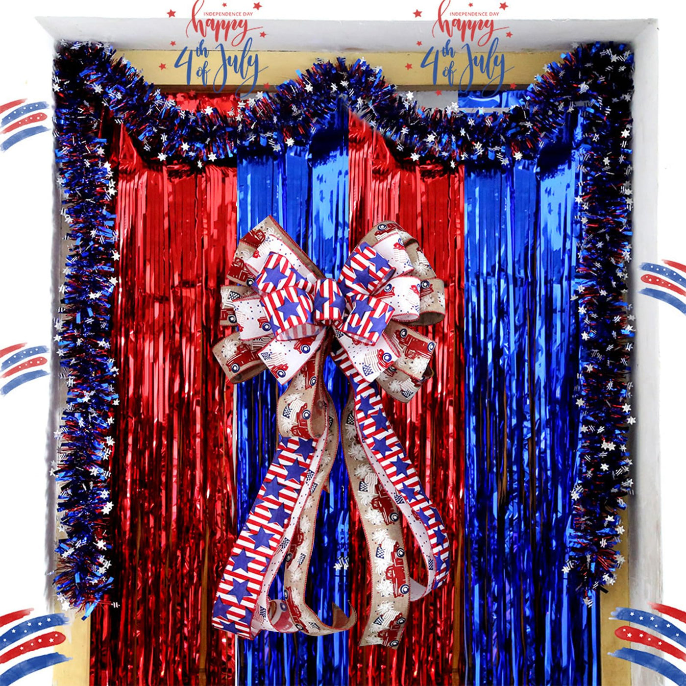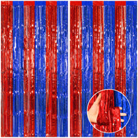 Canrevel 2 Pack 3.3X8.2 Feet Blue And Red Foil Fringe Backdrop Curtains, Tinsel Streamers Birthday Party Decorations, Fringe Bac