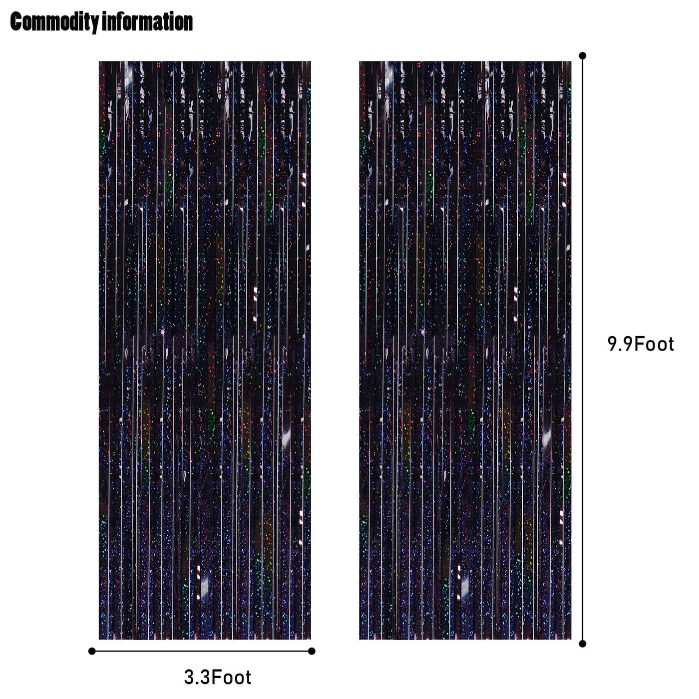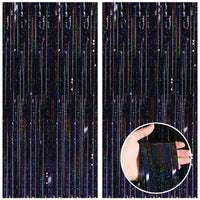 Canrevel 2 Pack 3.3X8.2 Feet Laser Black Foil Fringe Backdrop Curtains, Tinsel Streamers Birthday Party Decorations, Fringe Back