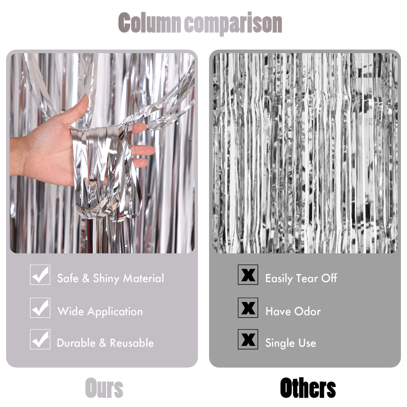 Q: Can these curtains be reused for future events?A: Absolutely! The durable tinsel material retains its shimmer and can be reused for multiple events. After your party, simply store them carefully for future use, ensuring they remain in good condition.