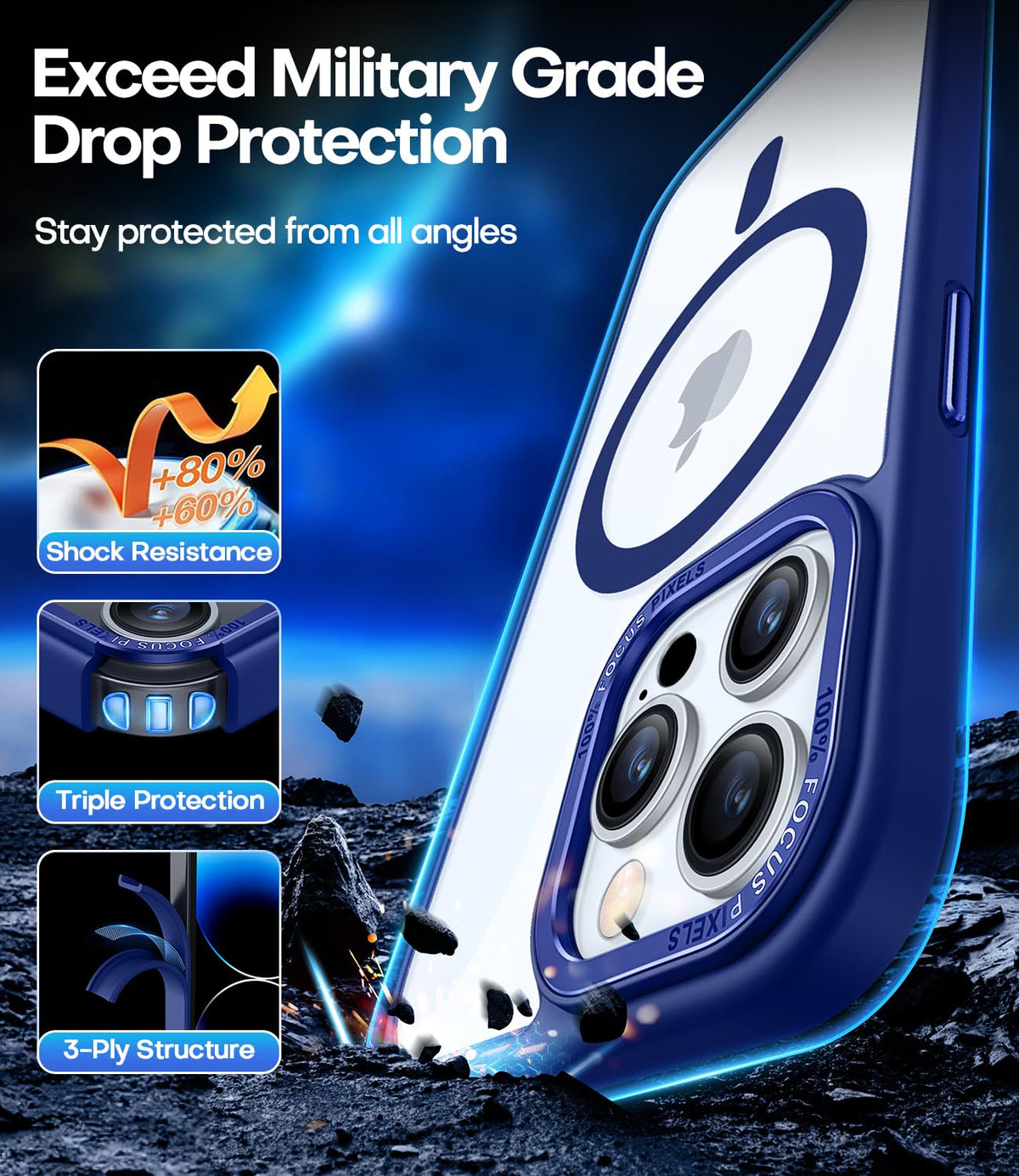 Q: What level of drop protection does this case offer?A: The CANSHN case provides 10FT military-grade drop protection thanks to its shockproof TPU bumper and tough polycarbonate construction, which includes extra cushioning on all four corners.
