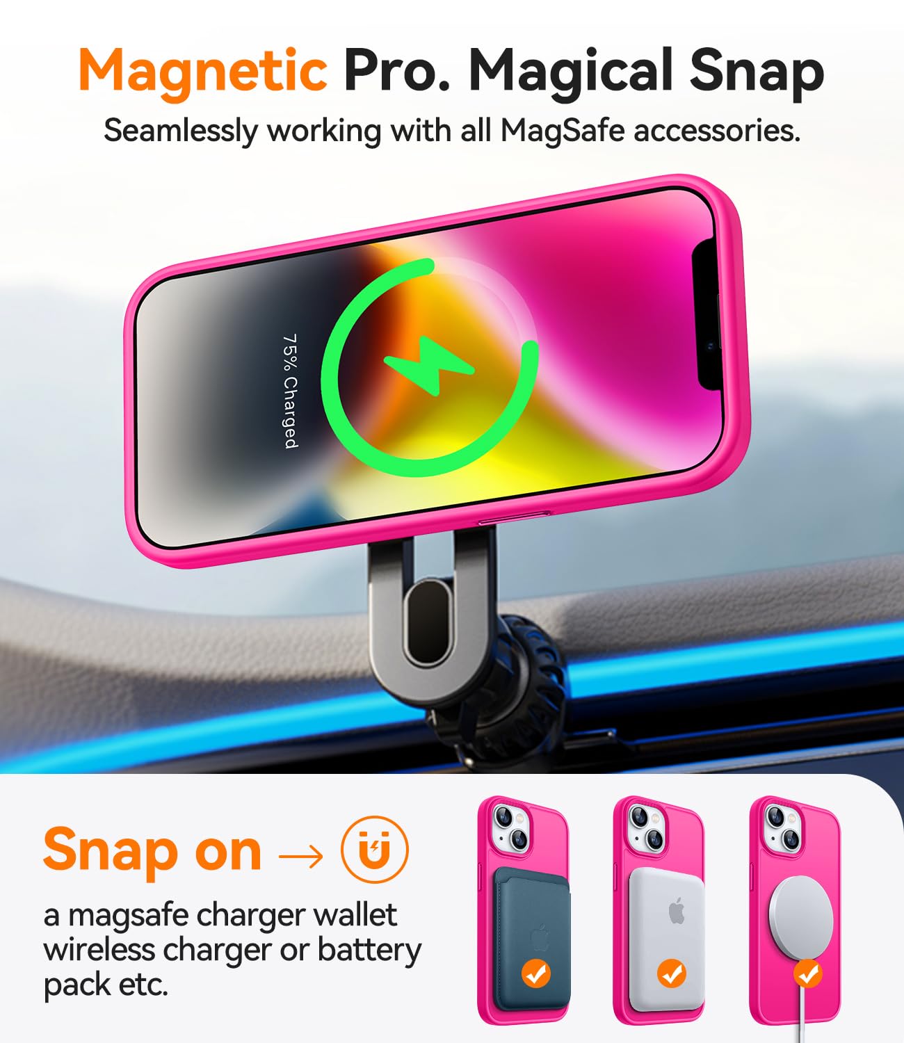 Q: Is the CANSHN case compatible with MagSafe accessories?A: Yes, the CANSHN case is designed to be fully compatible with MagSafe and Qi wireless chargers, ensuring a secure connection with magnetic accessories such as wallets and power banks.