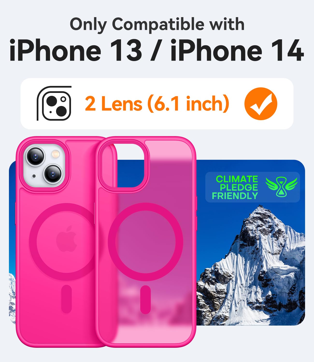 Canshn For Iphone 14 Case/Iphone 13 Case, Compatible With Magsafe, Translucent Matte Back Slim Shockproof Phone Cover, Hot Pink