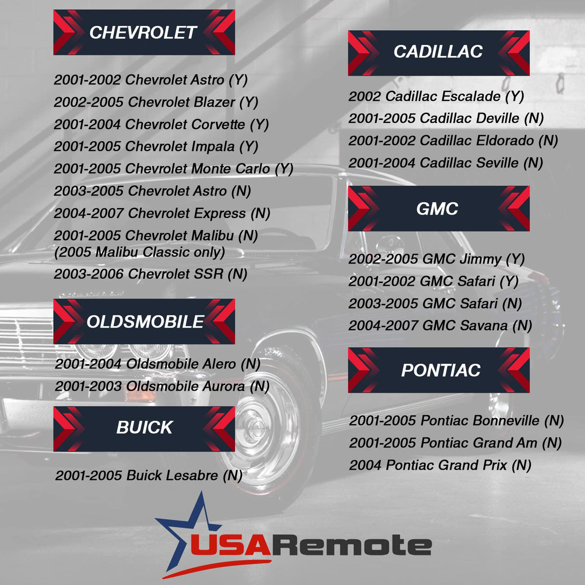 Replace Your Lost Or Broken Keyless Entry Key Fob Remote With A Usaremote Fob.Fits P/N: 10443537Chevrolet:2001-2005 Impala2001-2005 Monte Carlopontiac:2004 Grand Prixthis Is A Replacement Aftermarket Part.