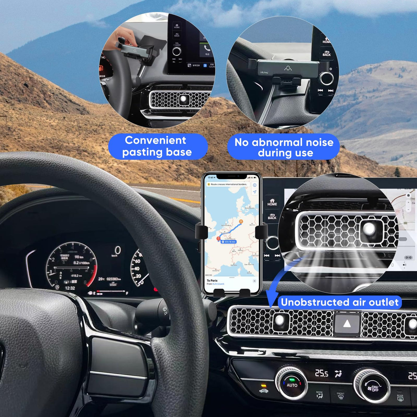 Q: What makes this phone holder a good accessory for my Honda Civic?A: This phone holder is specifically designed for Honda Civic models, ensuring a perfect fit and enhancing your driving experience with hands-free convenience.
