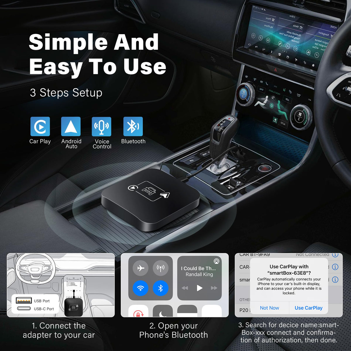 This Is An Adapter To Convert Wired Carplay To Wireless Carplay For Almost All Car Models, Compatible With Iphone 6+, Ios 10+, Android 11.0+ Phone Models.