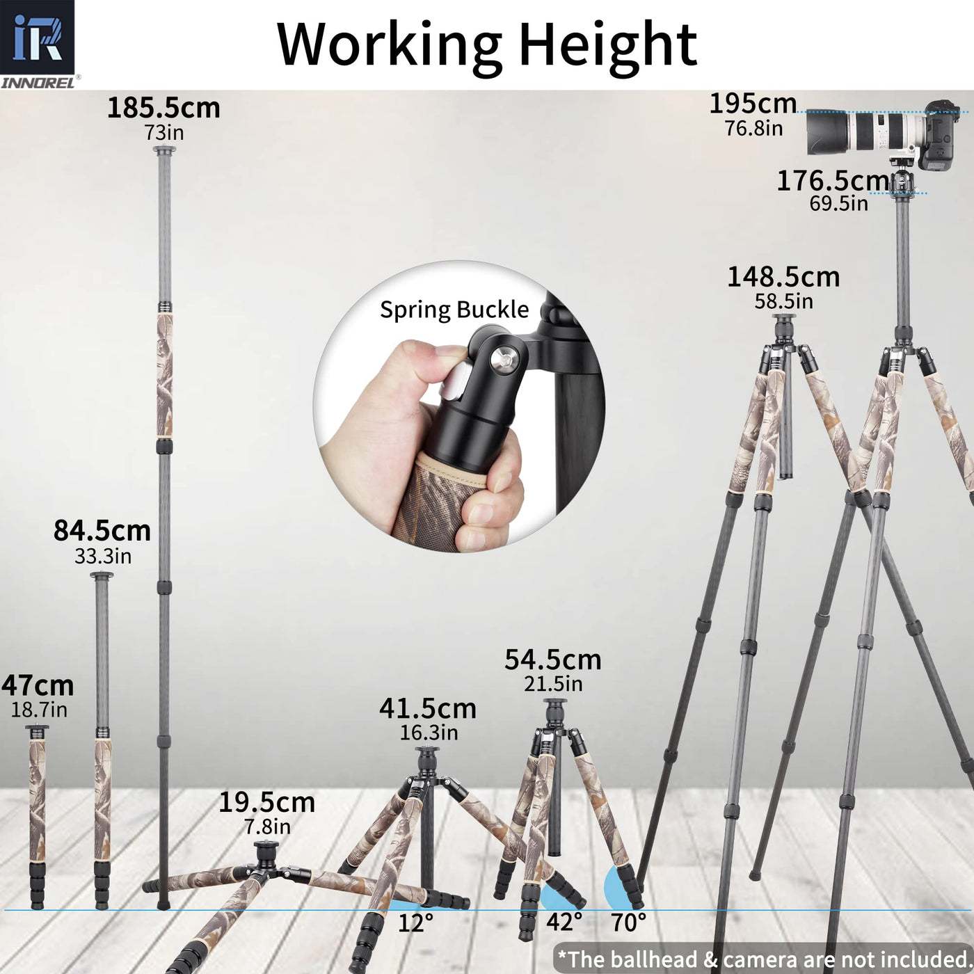Carbon Fiber Tripod Innorel Rt85Cm Without Ballhead Super Professional Tripod Monopod Heavy Duty Stand Support For Digital Dslr Camera Brown Camouflage